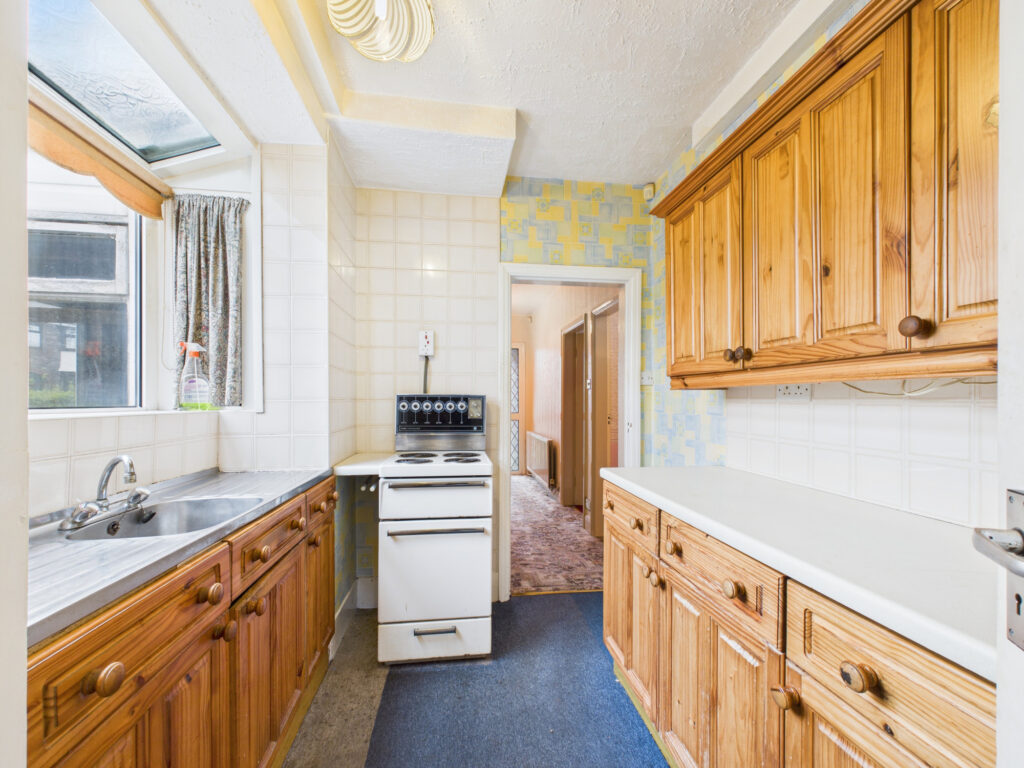 The ground floor is completed by a kitchen positioned to the rear, offering plenty of potential for modernisation, along with a separate utility room providing additional storage and practicality, with direct access to the outside.