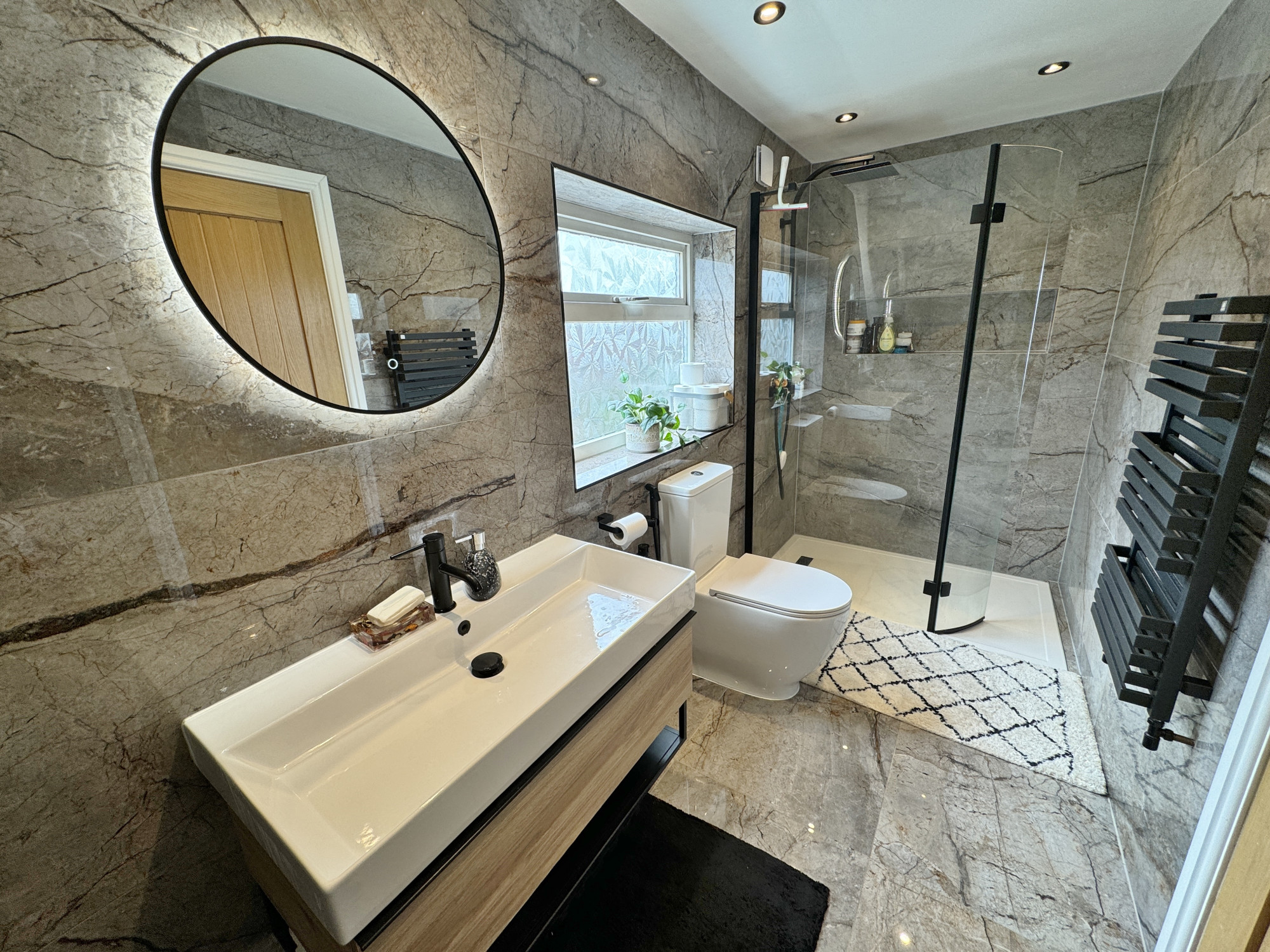 Moving to the upper floor the landing paves the way to three generous sized bedrooms which are allΒ tastefully decorated, providing comfortableΒ private spaces. A stunning family shower room is luxuriouslyΒ appointed, offering a spa-like experience.