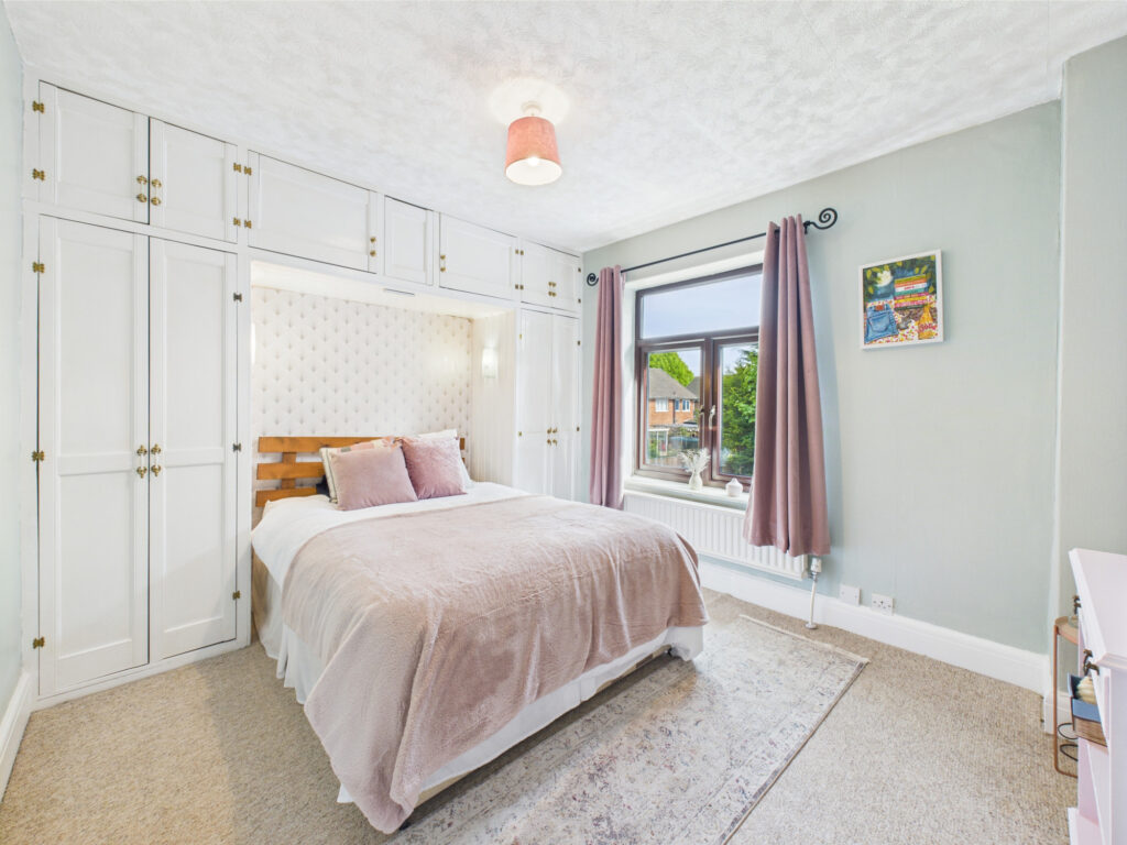 Upstairs, the first-floor landing leads to three bedrooms. The principal and second bedrooms are both generously sized and benefit from a high-quality range of fitted wardrobes and furniture, providing plenty of storage. The third bedroom offers flexibility as a child’s room, nursery, or home office. The family shower room has been updated to a modern three-piece suite with a large walk-in shower, contemporary tiling, and a stylish finish.