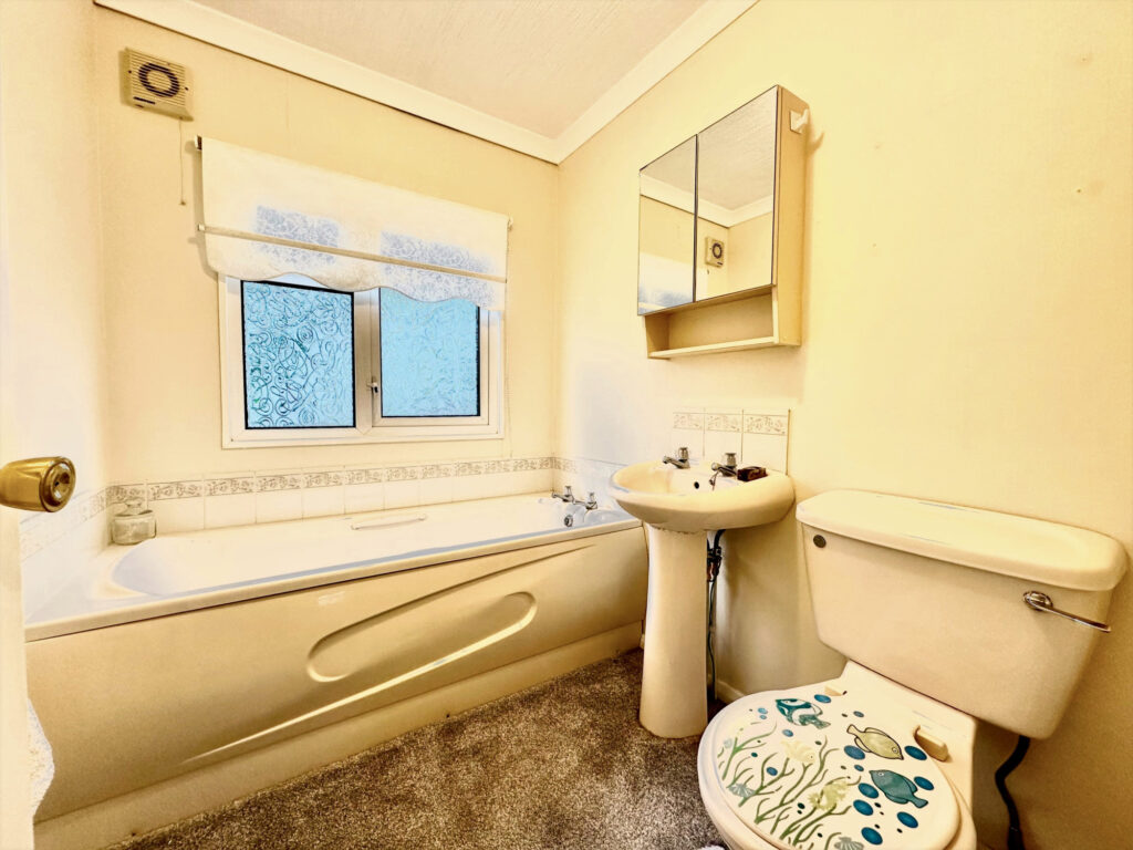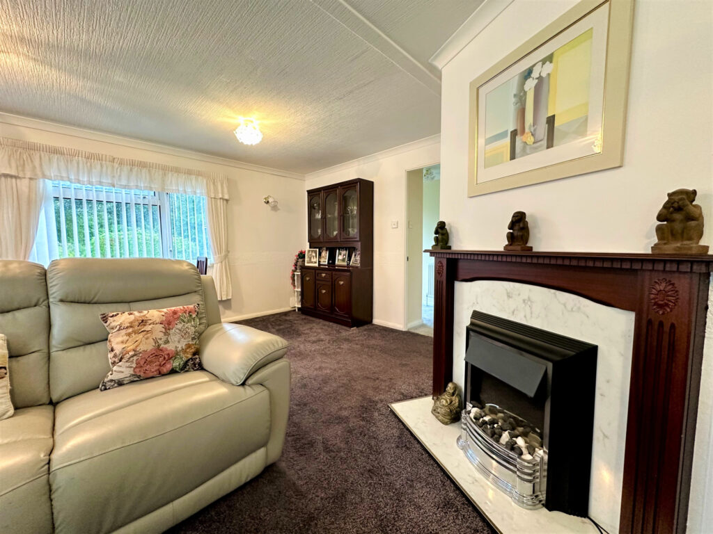 Externally there is parking on both sides of the property, stepped access to both sides, lawned area to the front and side as well as established trees and shrubs and rural views. Th rear of the property is privately fenced and comes with a garden shed. There is a four weekly ground rent charge of £ 140.61 that is paid directly to the site and includes water rates. The fee is paid the fourth Friday of every month. Strictly over 60s only and no pets allowed.