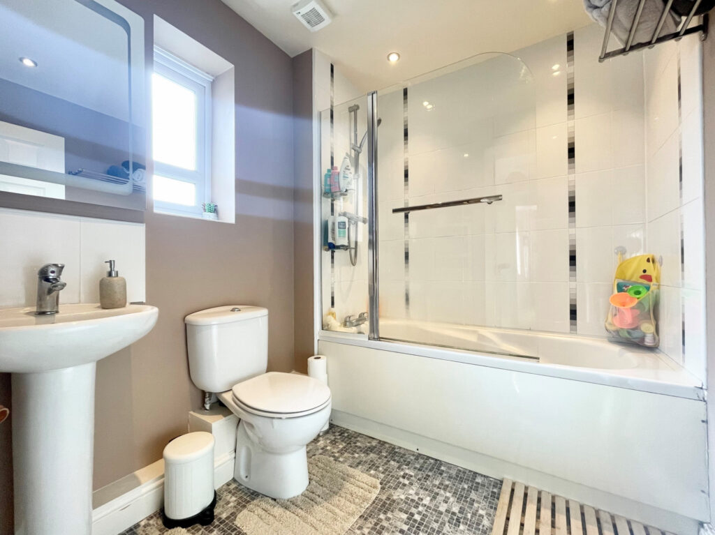 Upon entering you are greeted with a large hallway with a turned staircase rising to the first floor, and a door leading to that family essential downstairs WC. The rear of the property is the cosy lounge with French doors leading to the conservatory overlooking the garden. The kitchen diner itself is fitted with an arrangement of wall and base units that allow for plenty of storage, along with space for those white goods. The rest of the room offers the new owner flexibility and can be laid out to suit the new owner's needs, with space for a lounge seating area or dining area, but you choose! Rising to the first floor, the landing is where you will find doors leading into all three bedrooms and the family bathroom. The bathroom is fitted with a white three-piece suite with a shower over the bath, complemented by part tiled walls.