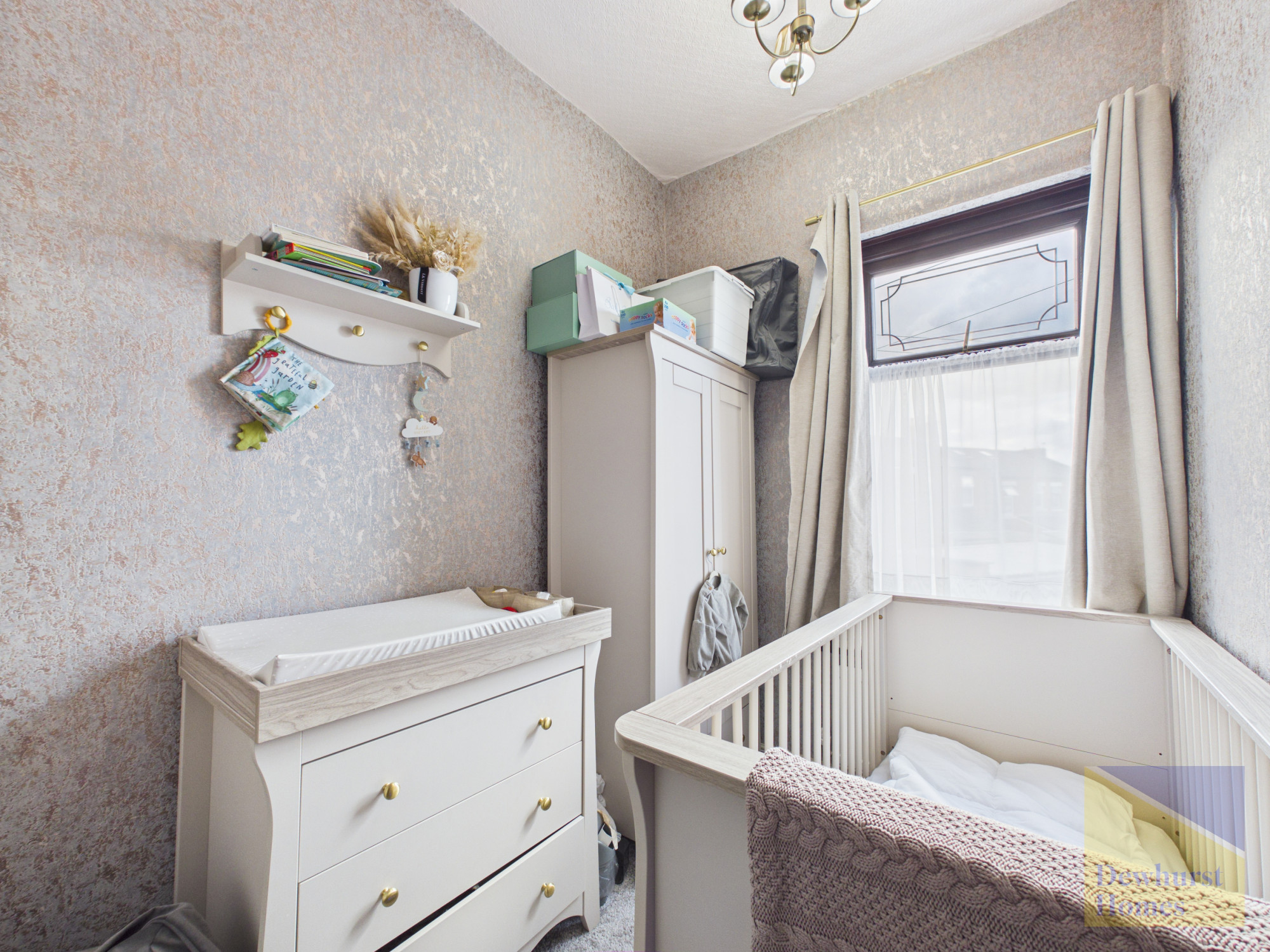 To the first floor, a split-level staircase leads to three well-proportioned bedrooms. There are two generous double bedrooms, both benefitting from fitted storage/wardrobes, along with a good-sized single bedroom currently utilised as a nursery.