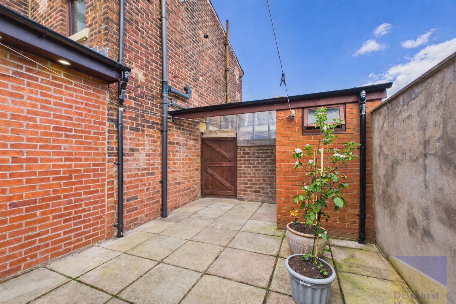 Upstairs includes two double bedrooms with fitted storage and a good-sized single bedroom. Externally, there is a rear yard with a covered area and an outbuilding with WC.