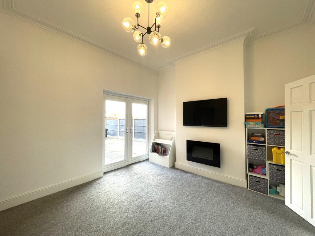 The property enjoys a private driveway, a double garage to the rear and a spacious garden, providing a wonderful outdoor space as well as the opportunity to extend further if desired. Inside, the house is finished to a high standard with high ceilings and a modern design, offering a true turn-key opportunity. The ground floor is both practical and versatile, featuring two welcoming reception rooms, a lounge and a family room, ideal for entertaining, relaxing or accommodating the needs of larger families. There is also a well-planned bathroom with bath, shower and built-in storage.
