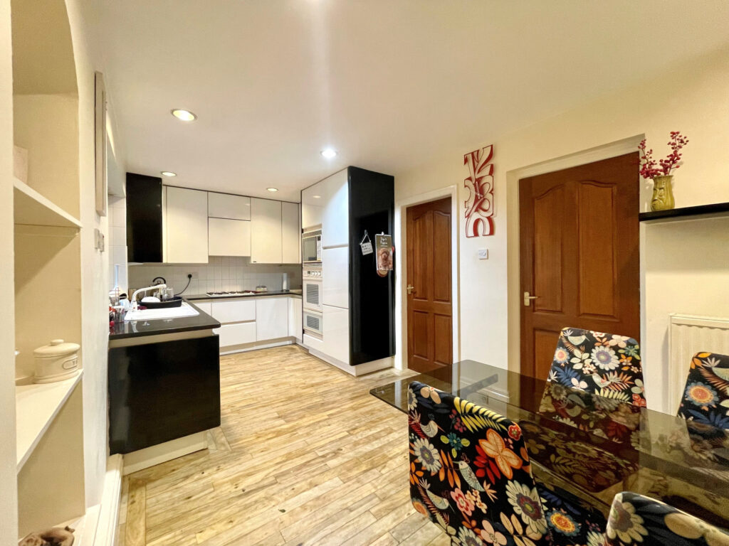 The kitchen comes complete with a comprehensive arrangement of wall and base units, complemented with a double oven, a four ring gas hob and ample space for a dining table, not to mention the additional storage cupboards. To continue that, you will find there is a good size utility room providing space to keep those white goods tucked away.