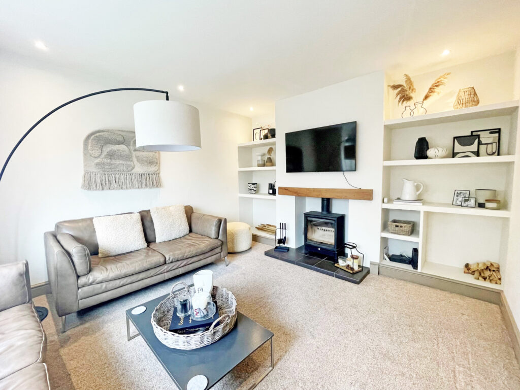 The lounge enjoys a spacious feel and an attractive bay window, allowing the room to be filled with light, finished with a log burner. Whilst to the rear there is an lovely open kitchen diner with patio doors leading out to the extensive west facing rear garden, ideal for entertaining.