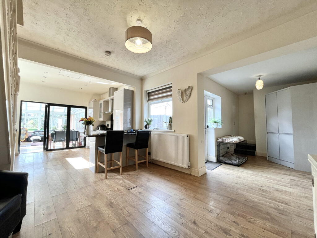 Step inside to discover a bright and airy reception room, providing a welcoming space for relaxation and entertaining. The huge kitchen diner is a real standout feature, offering ample space for family meals and social gatherings, while the conservatory provides a tranquil spot to enjoy garden views all year round.