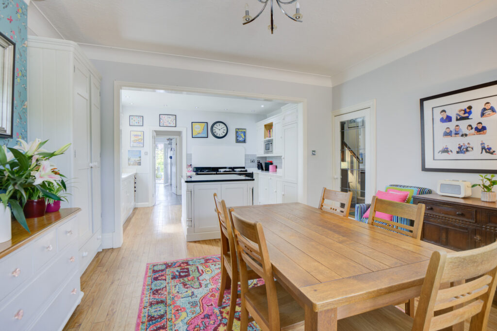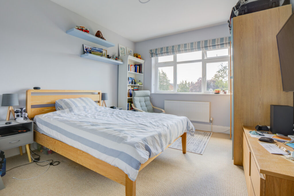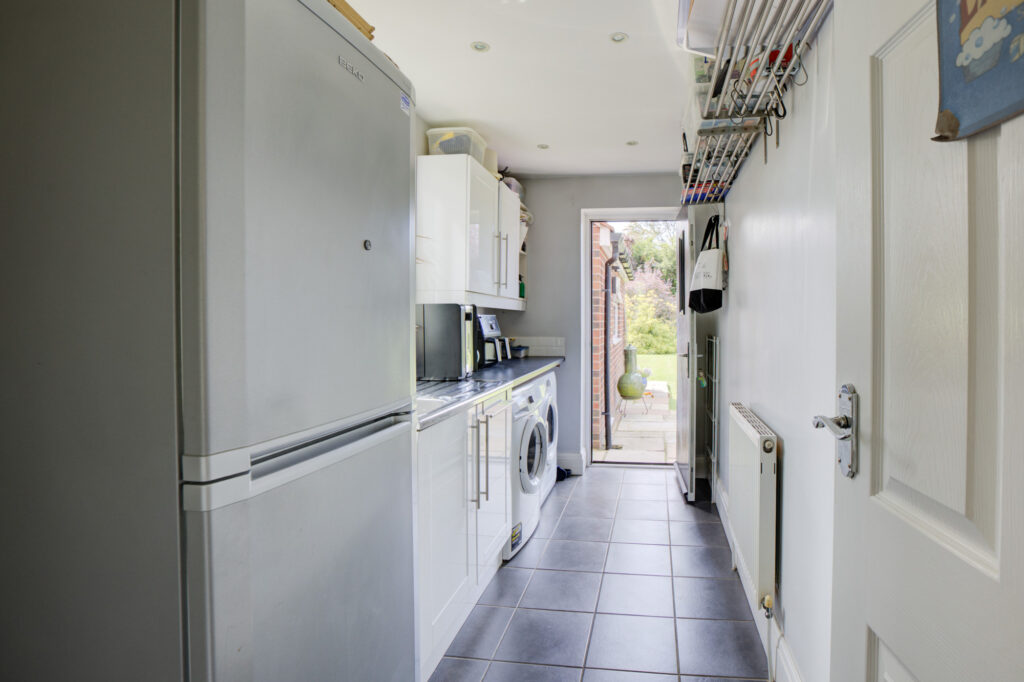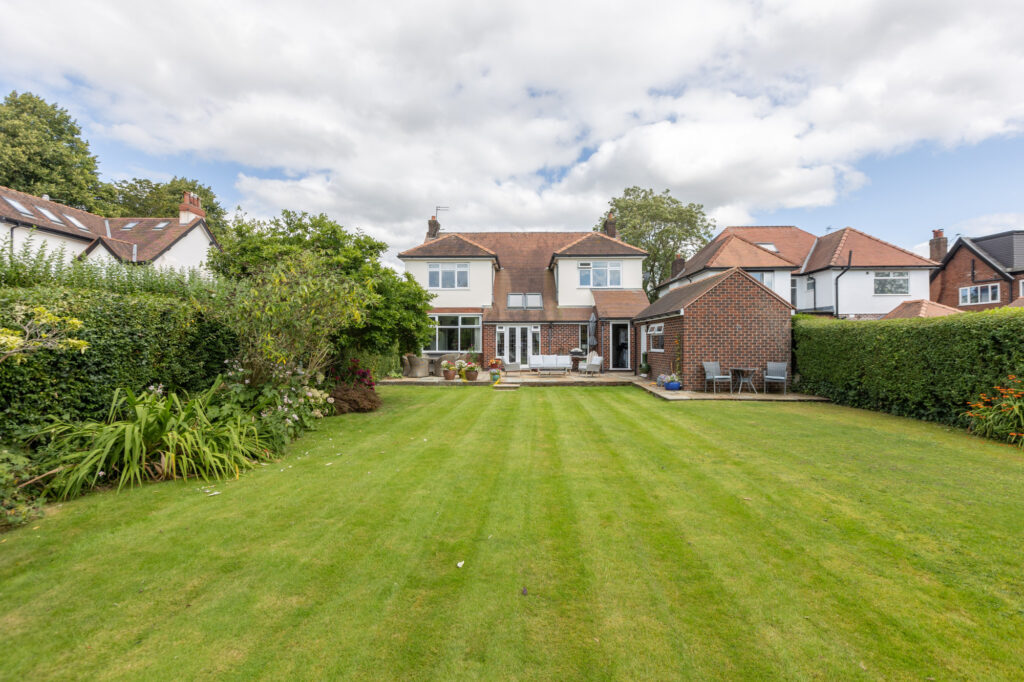 The beautiful south facing rear garden is truly a serene escape, starting with a lovely patio area creating a perfect spot to soak up the sun and entertain. The rest of the huge garden is predominantly laid to lawn. The garden is bordered by mature hedges, creating a really private space to enjoy the sun late into the evenings.