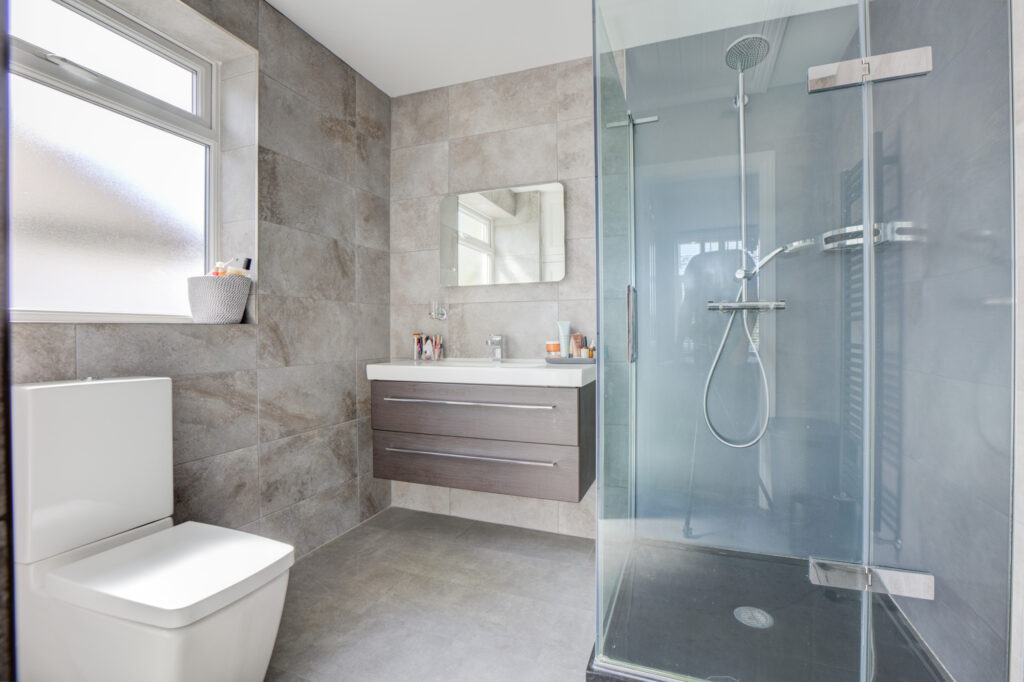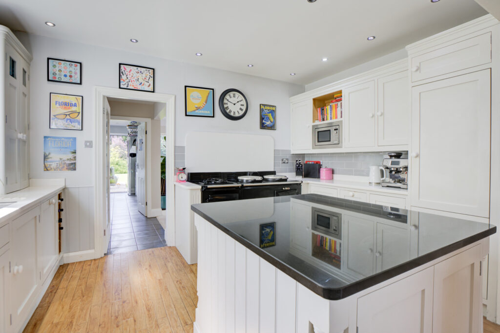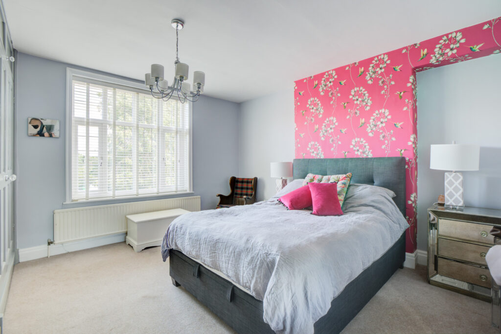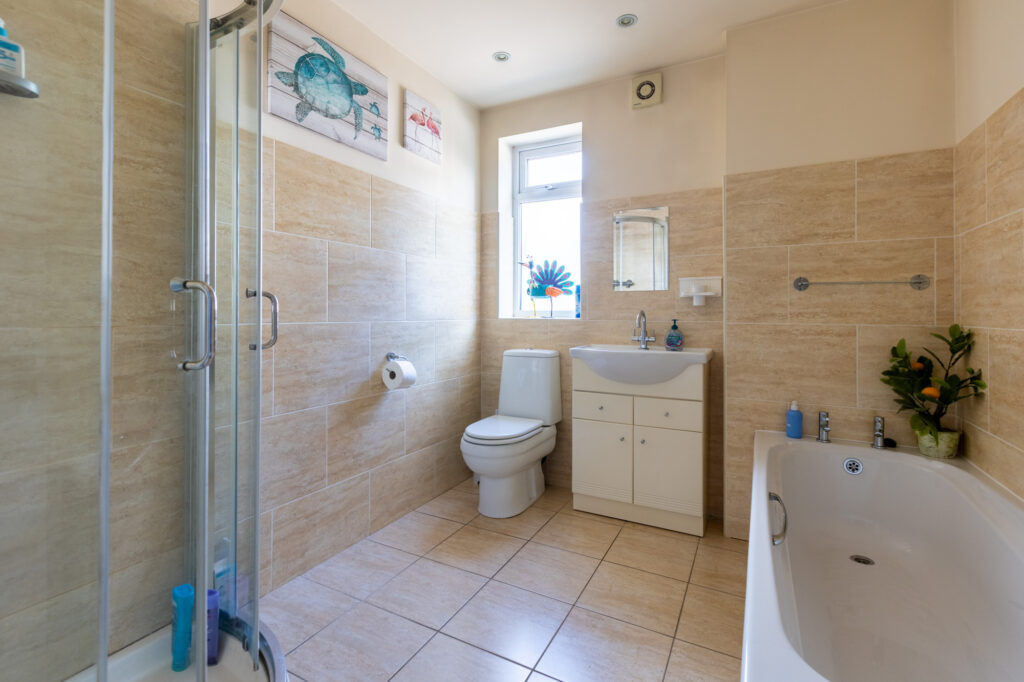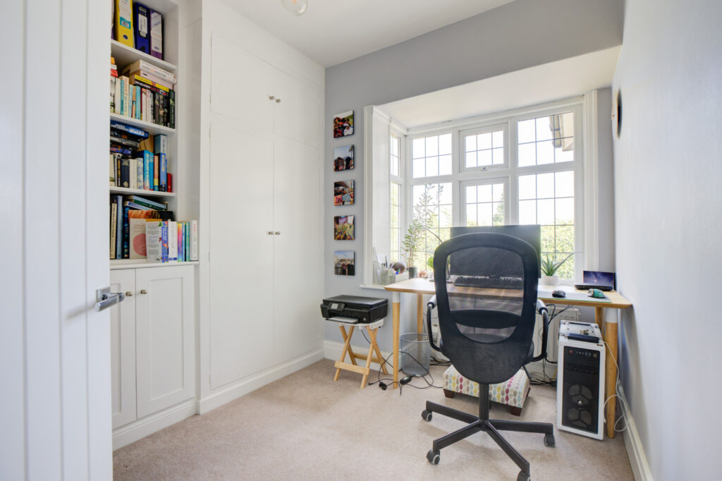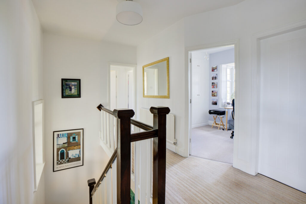 On the first floor, you’re greeted by a charming and spacious landing, while doors lead off into the five sizable bedrooms and family bathroom. Bedroom one is generous in size, with fitted wardrobes. This room benefits from a large modern en-suite shower room, complete with a shower, wash basin, and a WC. The property has a further three double bedrooms and a fifth bedroom, currently used as a home office. The family bathroom features a fabulous four-piece suite, including a bath, separate shower, WC, and washbasin. The bathroom is complemented by wall tiles and tiled flooring.
