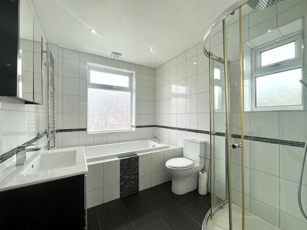 This property briefly comprises; entrance hall with a under stairs storage cupboard, a large family lounge benefiting from a bay window, second reception/dining room with patio doors leading into a conservatory room overlooking the garden. The fitted kitchen houses a range of wall and base units. To the first floor, three good size bedrooms and a four piece family bathroom room including; a bath, separate shower, WC and a vanity wash hand basin.