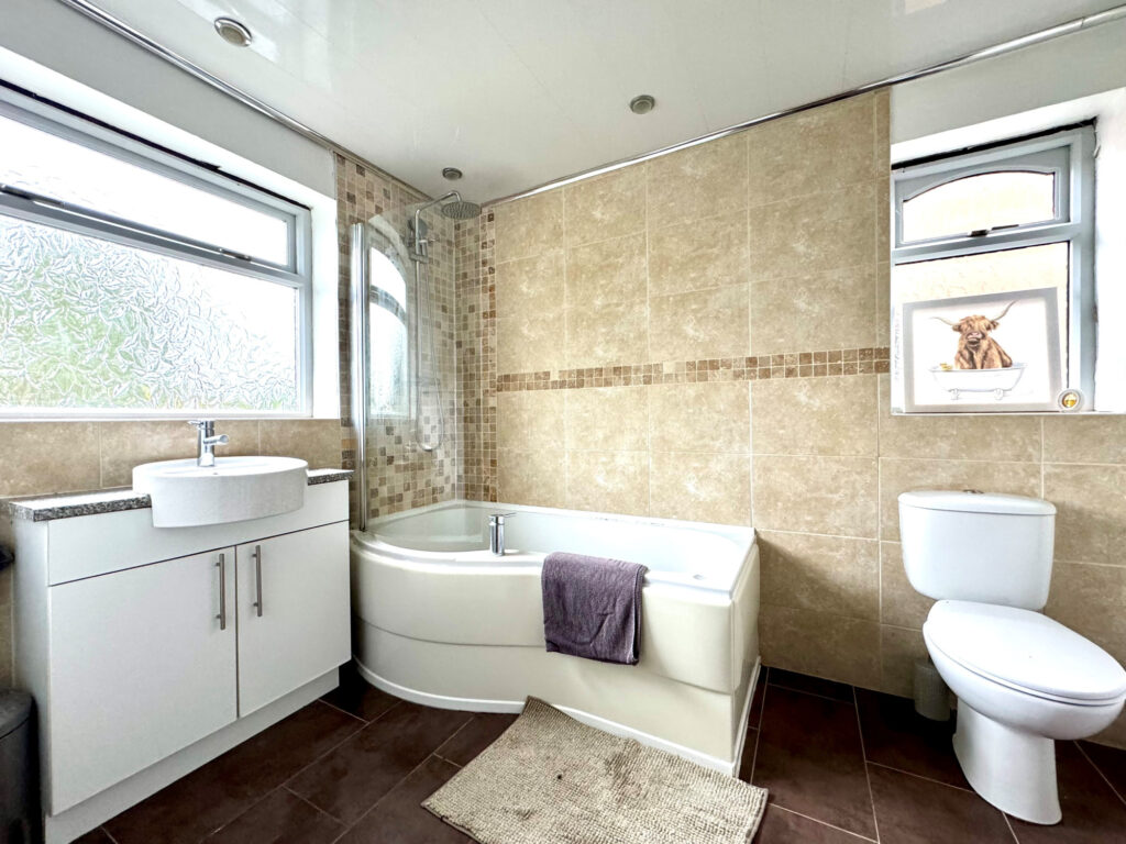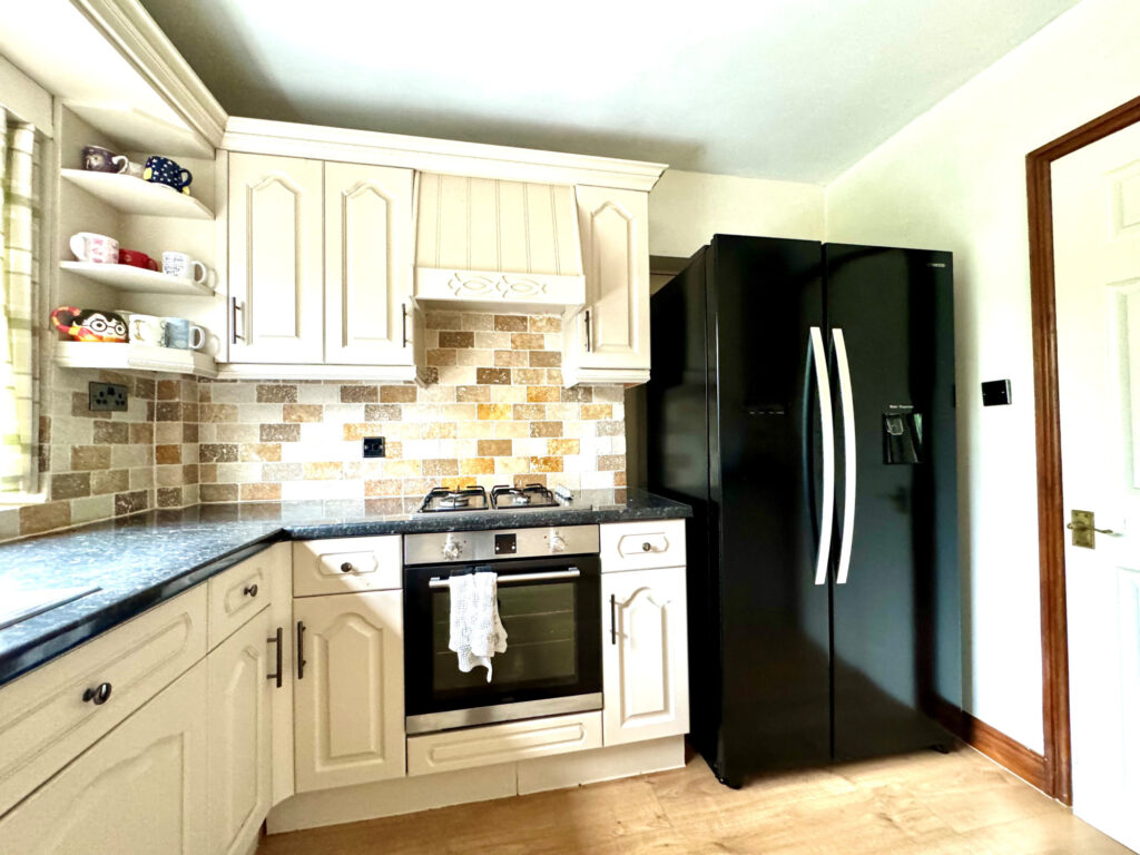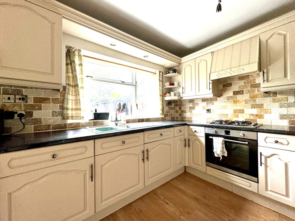 The property briefly comprises: welcoming hallway, bright and airy 16ft lounge with multi fuel stove with stone mantle, open plan kitchen/diner with a range of wall and base units, stainless steel sink with mixer tap, complimentary worktops and accessories, integral oven and hob with extractor over and French patio doors. Three good sized bedrooms and a family bathroom with w/c, hand wash basin, p shaped bath with shower over, storage and contrasting wall and floor tiling.
