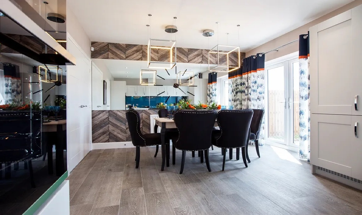 PlotΒ 180 -Β ESK - This superior home benefits from open plan dining/kitchen, lounge and WC to the ground floor. To the first floor are four bedrooms, master bedroom with en-suite and family bathroom. A single garage and gardens to the rear. Finished to a high standard throughout with high quality appliances and bathrooms.