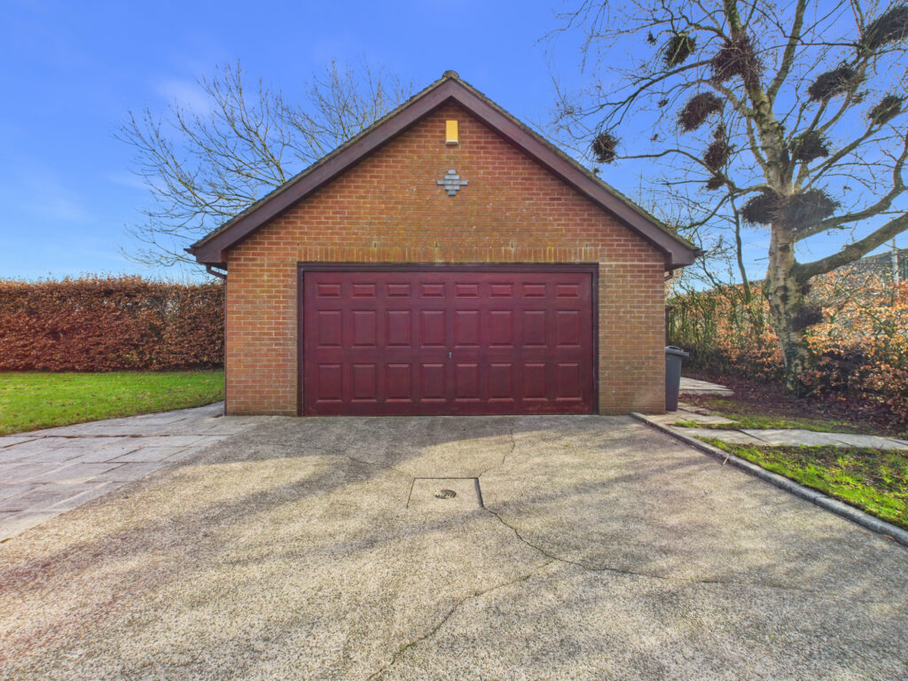 Completing this idyllic scene is a detached double garage, complete with an electric up-and-over door, offering secure and effortless access for your vehicles. A gated entrance adds that extra layer of peace of mind, transforming this property into your very own personal sanctuary.
