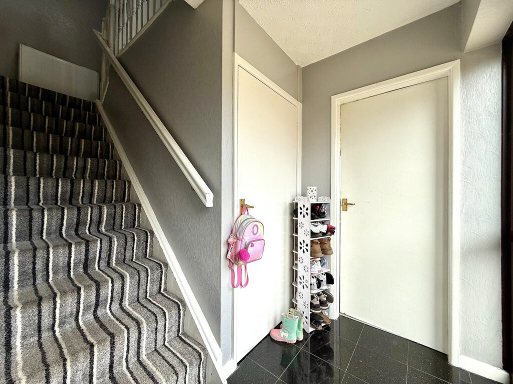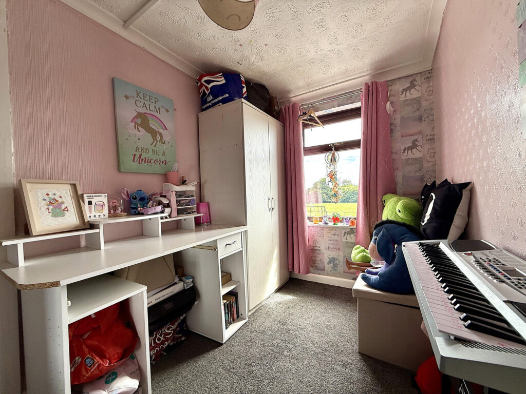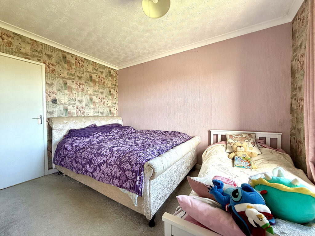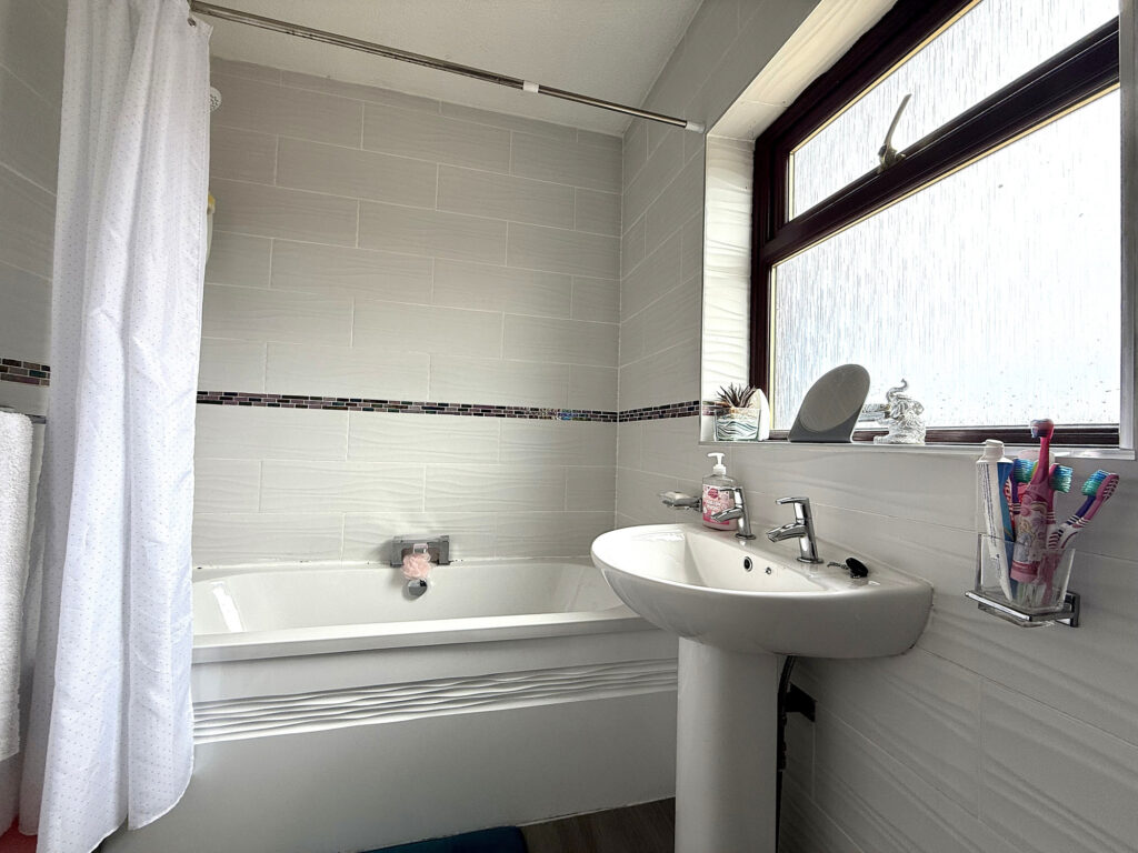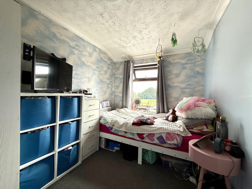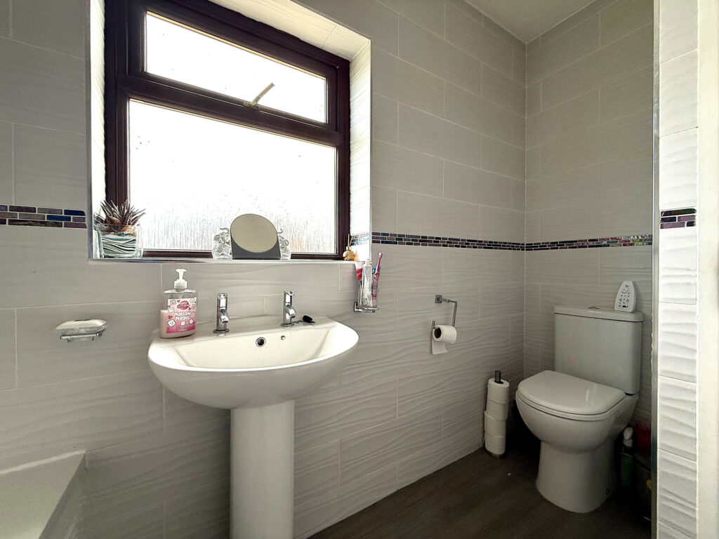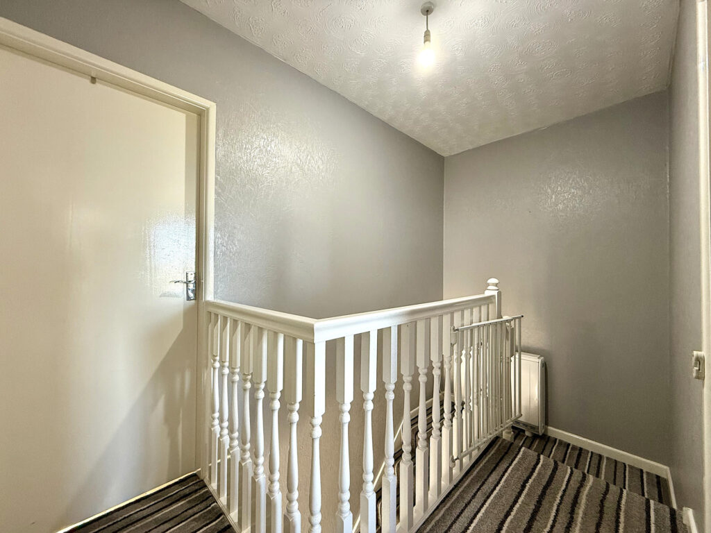 Ascend to the first floor and discover a home thoughtfully designed for modern living. This property offers convenient access to all rooms, complemented by a practical storage cupboard – ideal for maintaining a clutter-free environment. The master bedroom is particularly impressive, boasting a generous L-shaped layout and the convenience of fitted storage. Dual windows flood the space with natural light, creating a serene and welcoming atmosphere. Bedroom two provides a comfortably sized single room, further enhanced by an open-aspect dressing room – a versatile space that can easily adapt to your needs, whether as a dedicated wardrobe area, a home office, or a quiet reading nook. The bathroom has been well appointed with a modern aesthetic. A bath with a shower over offers flexibility, while the hand wash basin and WC are finished to a high standard. Contemporary tiling and gleaming chrome fixtures and fittings complete the sophisticated look.