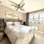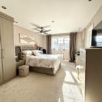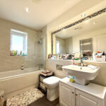 This delightful first-floor residence welcomes you with a graceful ascent via a staircase leading to a light and airy living space. The layout provides access to all first-floor rooms, including four generously proportioned bedrooms and a contemporary family bathroom. Bedroom one is a spacious, light-filled retreat featuring built-in fitted furniture and an en-suite bathroom with a walk-in shower, folding doors, a WC, hand basin, heated towel rail, and an additional storage cupboard. The remaining bedrooms (two, three, and four) are all double-sized, offering comfortable accommodation for family or guests. The family bathroom is equipped with a bath with a shower over, a glass screen, WC, hand basin, and a heated towel rail. Complementing the space are stylish tile accents, chrome fixtures and fittings, and multiple storage options throughout. Overall, this well-appointed first-floor layout combines practicality with comfort, making it an ideal home for modern living.