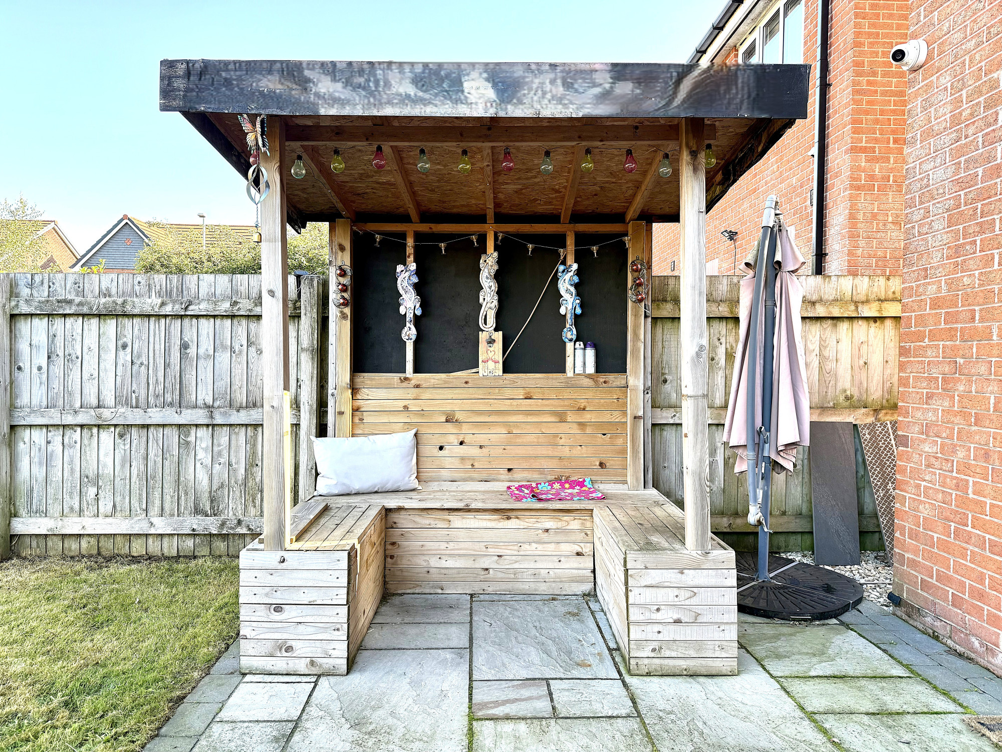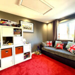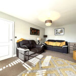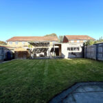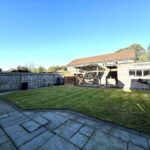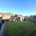 Welcoming driveway to the front with parking for two cars. A tidy lawn area frames the entrance, while convenient access leads to the front of the garage. A side gate provides entry to the rear garden, which offers a large patio area, well-kept lawn, and multiple seating areas perfect for outdoor entertaining. Ample garden storage and secure fencing ensure you have plenty of space and privacy. The garden is designed for easy maintenance, making this home ideal for enjoying outdoor living with minimal upkeep.