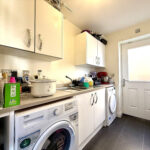 A spacious hallway leads you into a bright and welcoming home. The lounge is good-sized and features a large bay window that fills the room with natural light. The fitted kitchen boasts a full range of sleek wall and base units, complemented by stylish worktops and splash backs, a sink and drainer with a mixer tap, and integrated appliances. Adjacent is a generous dining/seating area with patio doors opening to the rear garden, creating a seamless indoor-outdoor flow for entertaining. A practical utility room sits off the kitchen, fitted with base units, a sink and drainer, and space and plumbing for a washing machine. There is convenient side access to the garden for easy outdoor chores. Completing the ground floor is an under stairsΒ w/c, adding extra convenience.