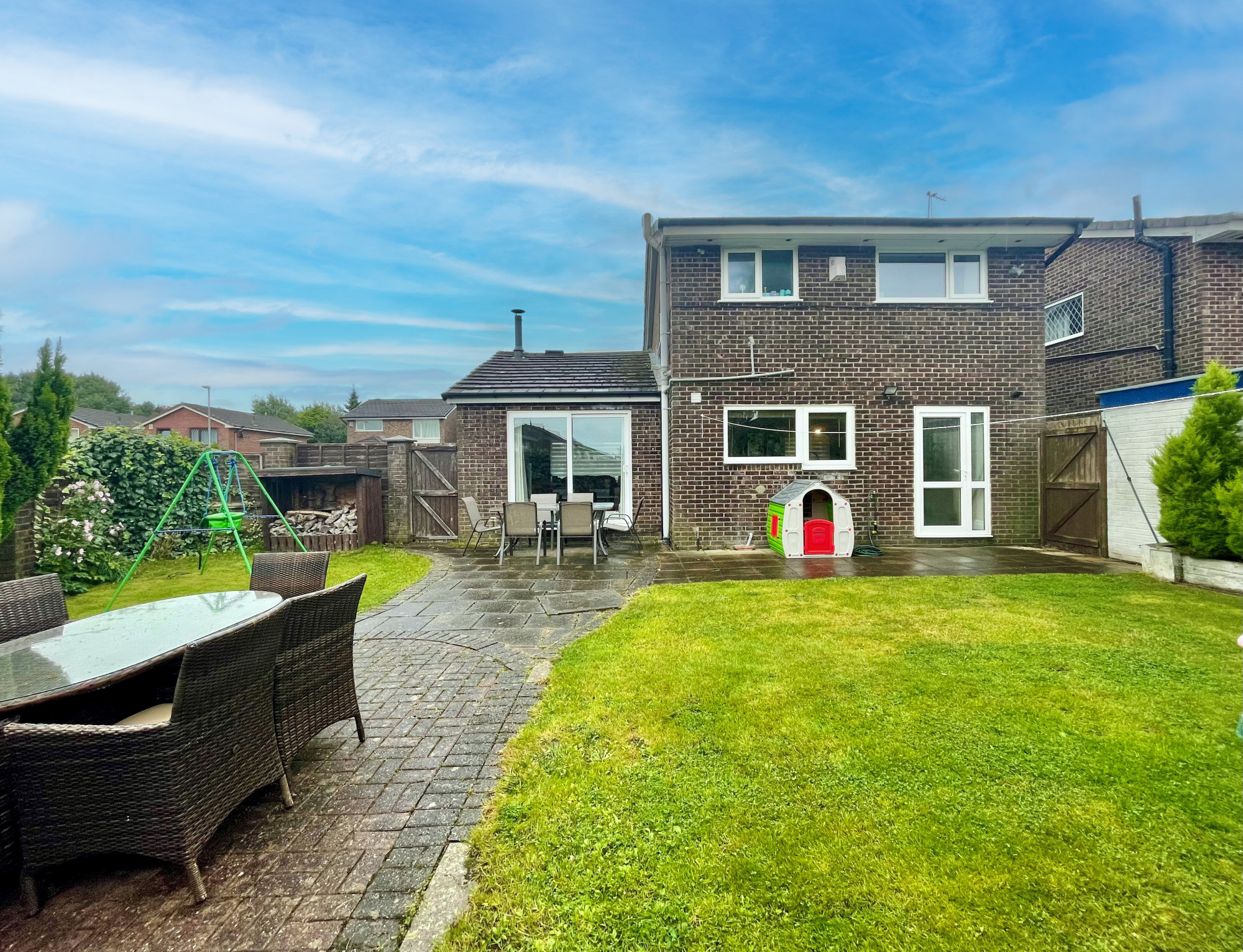Externally, there is a front garden, mainly laid to lawn, a drive to the side offering off road parking leading to the detached garage. The rear garden is a extensive enclosed westΒ facingΒ garden, mainly laid to lawn with multipleΒ patio areas, perfect for those BBQΒ evenings.Β