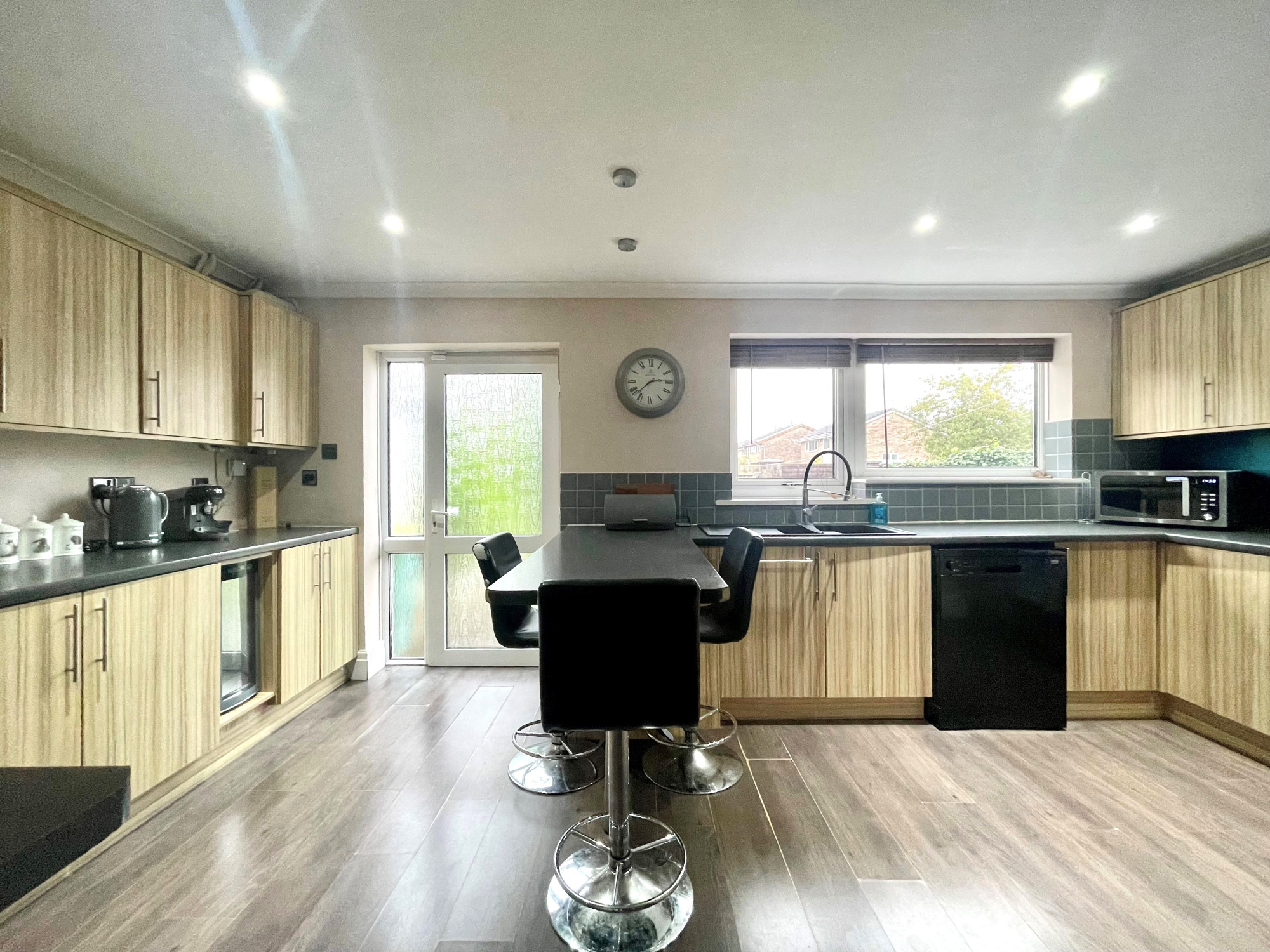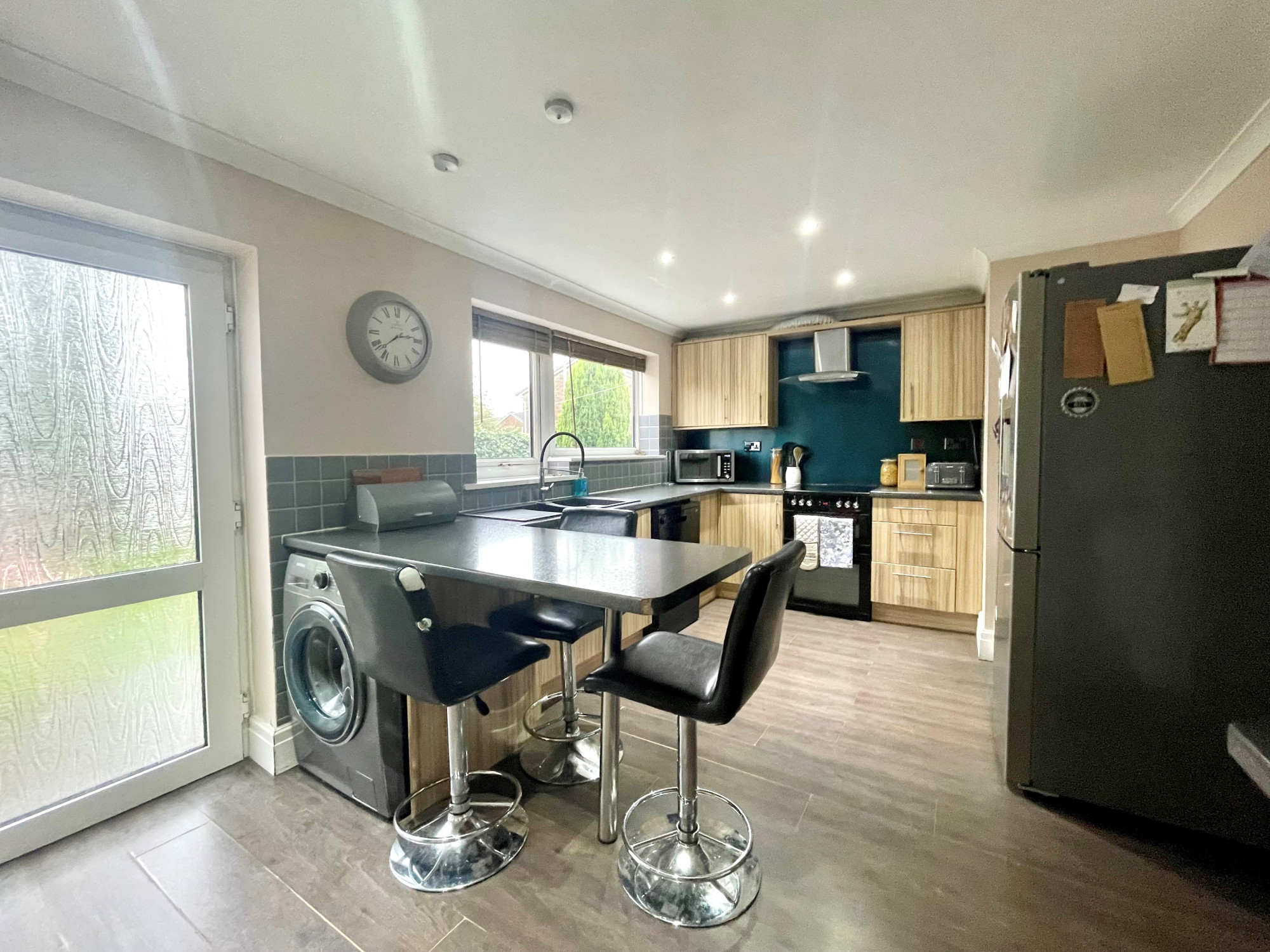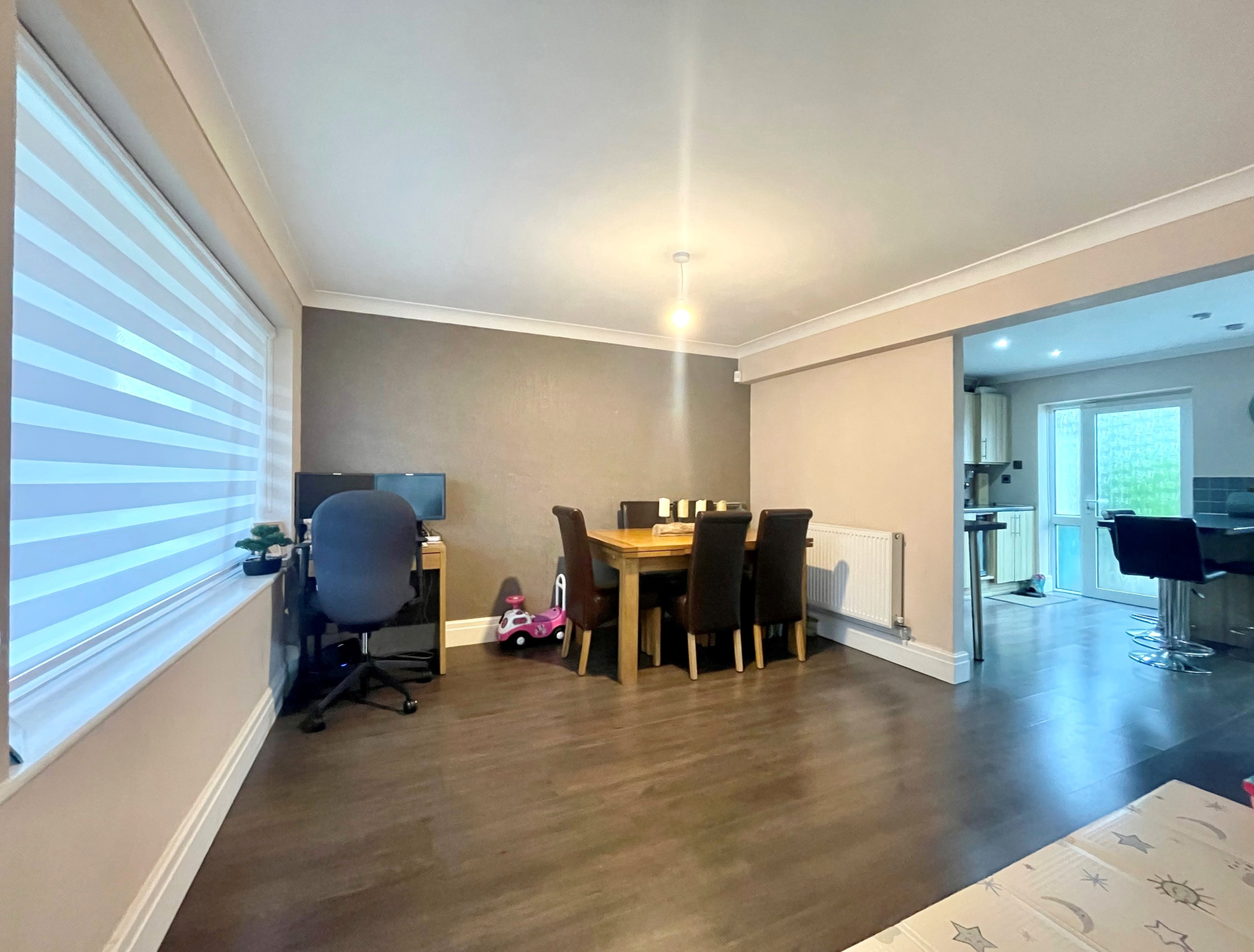 The lounge enjoys a spacious feel with sliding doors out to the rear garden, finished with a log burner. Whilst the dining/second reception room opens out into the kitchen, fitted with a range of wall and base units.Β