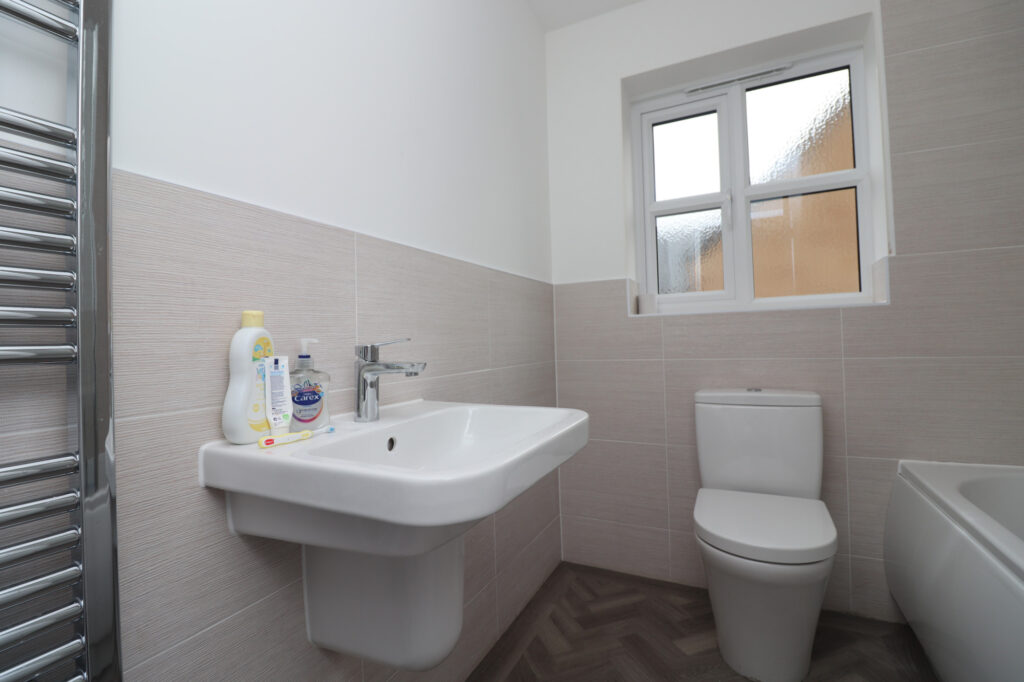 To the first floor there is the landing with doors leading into the three double bedrooms and the family bathroom. The main bedroom enjoys a very unique feel running the length of the property with built in wardrobes and three piece en suite with separate shower, toilet and wash hand basin. houses an en-suite. Finally, there is a three piece family bathroom finished in white with shower over bath, toilet and wash hand basin.