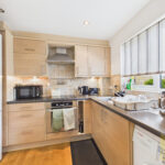 The spacious lounge diner provides an excellent area for both relaxation and entertaining, with direct access to a private patio area, ideal for enjoying outdoor seating. The modern fitted kitchen is well equipped with integrated appliances and offers ample storage and worktop space, creating a practical yet stylish environment.