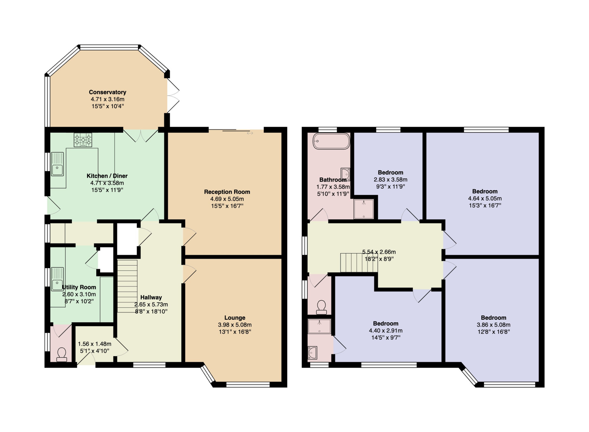 Upon entering the property, you are greeted with a large entrance hall benefiting from a cupboard offering plenty of storage space and stairs to first floor. The family lounge is a great size with sliding doors leading out onto the rear garden and enjoys a beautiful log burner, creating a cosy setting. The second reception room provides flexible space and flooded with natural light thanks to the bay window. The modern fitted kitchen diner has been fitted with an arrangement of wall and base units complete with Granite worksurfaces and high spec integral appliances, leading out to the conservatory with a lovely view of the garden. The ground floor is complemented with a useful utility room and downstairs WC.