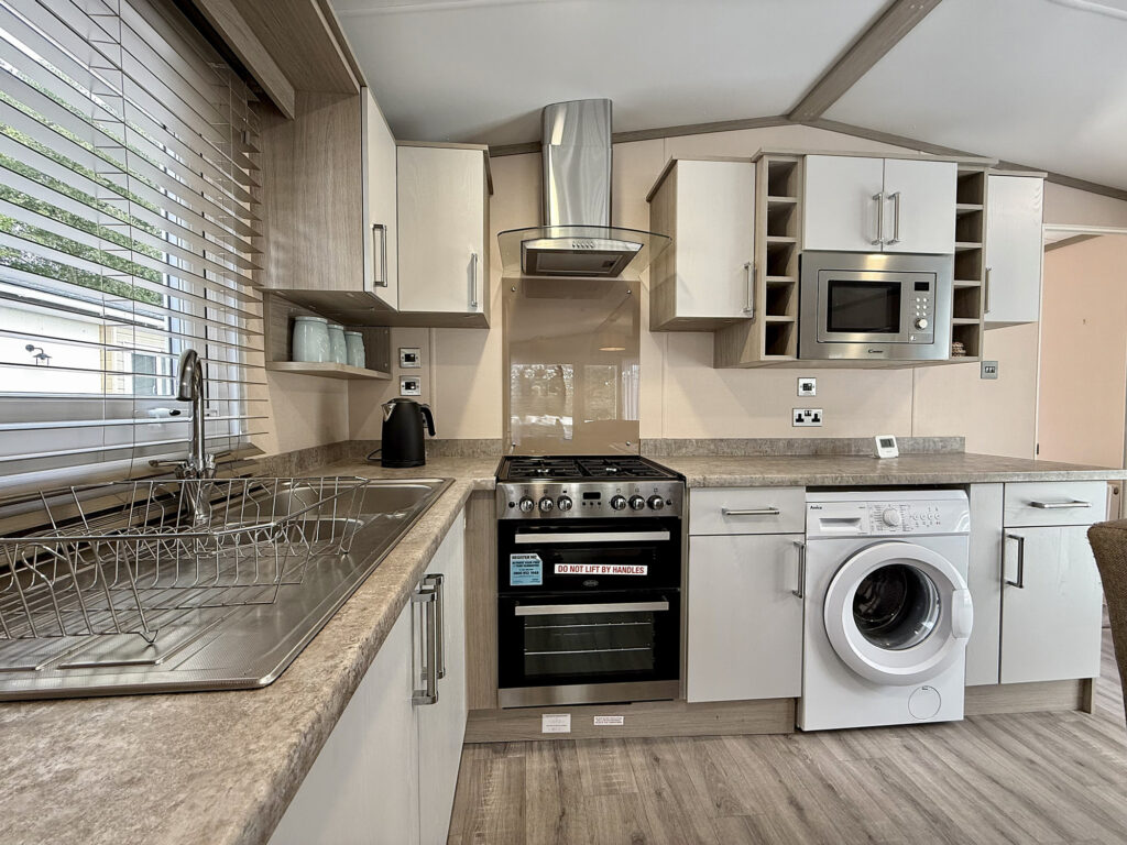Step into a world of contemporary elegance with the beautifully appointed open-plan living area, where the lounge, dining, and kitchen spaces flow seamlessly together. This thoughtful design creates an inviting atmosphere that's perfect for both intimate family gatherings and entertaining cherished friends. The space has been meticulously furnished with quality modern soft furnishings that strike the perfect balance between style and comfort, ensuring every moment spent here feels like a luxurious escape. The heart of this home features a stunning kitchen equipped with premium integrated appliances, allowing you to create memorable meals while remaining connected to your loved ones. Whether you're preparing a simple breakfast or hosting a dinner party, this space makes every culinary experience a joy. Two generously proportioned bedrooms provide peaceful sanctuaries for rest and rejuvenation. Each room has been carefully designed with comfort in mind, offering the perfect environment for restorative sleep after days filled with adventure and relaxation. Two beautifully appointed shower rooms ensure that convenience and privacy are never compromised, making this home ideal for families or groups of friends seeking their own personal space. Perhaps the most captivating feature of this remarkable property is the stunning countryside views that greet you each morning. These panoramic vistas create an ever-changing canvas of natural beauty, from golden sunrises to peaceful evening sunsets, providing a constant reminder of the tranquil setting you've chosen to call your home away from home. Nestled within a well-maintained site that takes pride in its pristine condition and attention to detail, this property offers the rare combination of accessibility and seclusion. The peaceful setting provides the perfect backdrop for creating lasting memories with those who matter most.