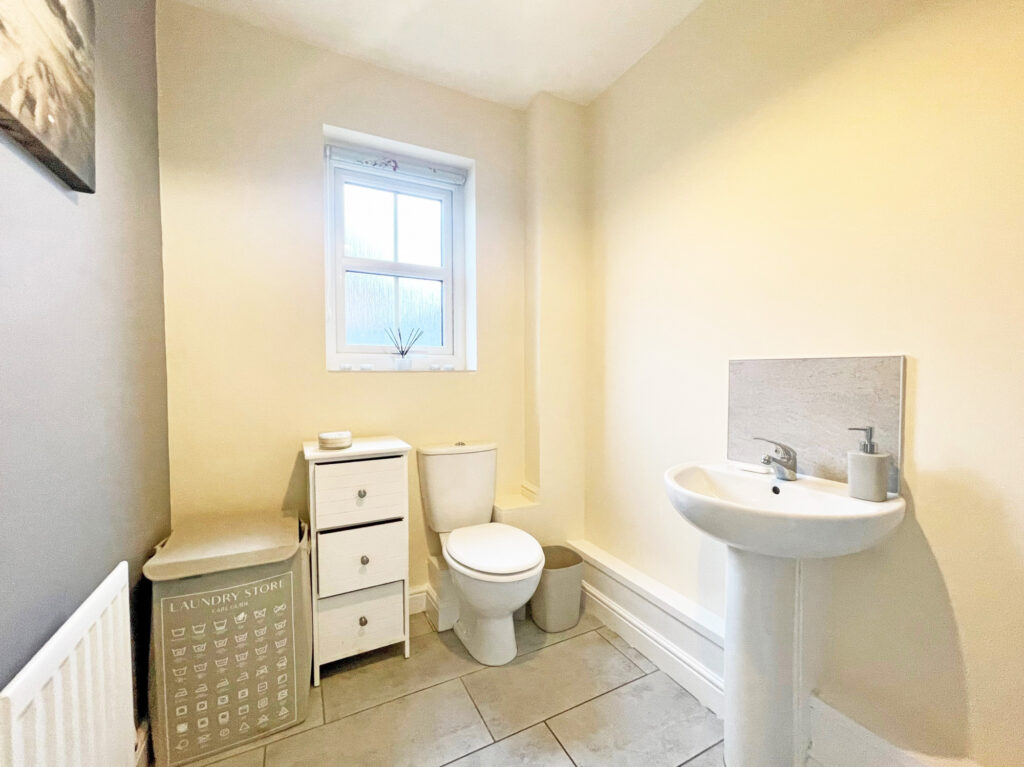 The property offers a welcoming spacious lounge with convenient under-stair storage and stairs leading to first floor. Just off the lounge is the modern kitchen with breakfast bar and unity space. The modern fitted kitchen comes with some integrated appliances such as an oven/hob and extractor. In addition, the diner has enough space for a dining table and access to the rear garden via French doors. The ground floor is also complemented with a downstairs wc. To the first floor are three great size bedrooms and family bathroom.