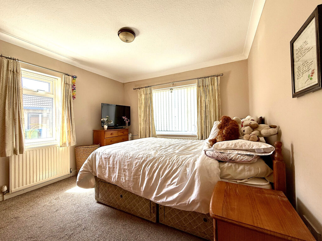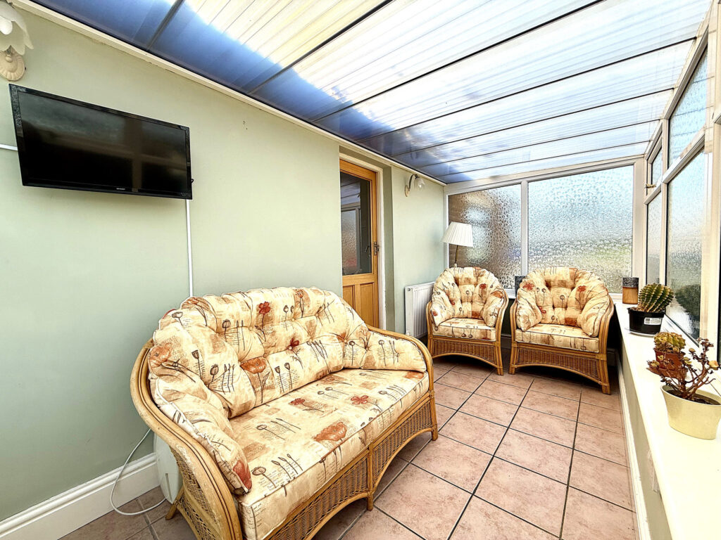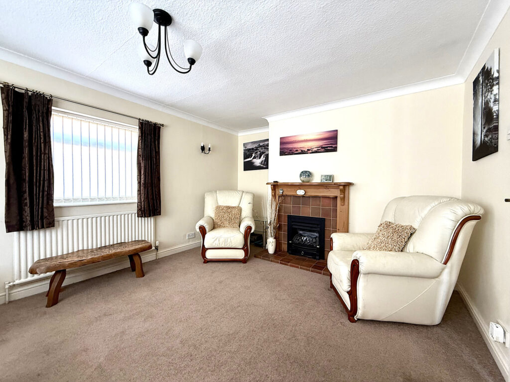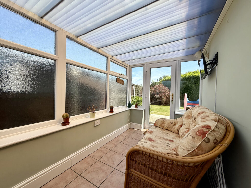Step inside and immediately appreciate the convenience of a covered porch, leading into a spacious hallway that serves as the heart of the home. From here, you’ll find easy access to all principal rooms, alongside practical storage solutions including a convenient cupboard and access to a loft space – ideal for maximizing storage or perhaps future expansion possibilities. The inviting lounge is designed for relaxation and features a beautiful focal point in the form of a feature fireplace. Natural light floods the room through dual aspect windows overlooking both the front and side of the property, creating a bright and airy atmosphere. The kitchen is thoughtfully appointed with a range of wall and base units, seamlessly integrated appliances, and stylish worktops and tiling that complement the overall aesthetic. A window provides pleasant views over the rear garden while offering direct access to the conservatory – an excellent space for informal dining or simply enjoying the outdoors, come rain or shine. A further storage cupboard adds to the practicality of this well-designed space. The conservatory itself is bathed in light thanks to glazed windows on three sides, offering tranquil garden views and providing direct access to the rear garden through a conveniently located doorway. This lovely home boasts two generously sized double bedrooms. Bedroom one benefits from dual aspect windows offering views to both the front and side, while bedroom two overlooks the rear garden through dual aspect windows providing peaceful outlooks . The bathroom is finished with a bath complete with shower over and glass screen, alongside a charming hand wash basin and WC. Chrome fixtures & fittings and complementary tiling complete this relaxing space.