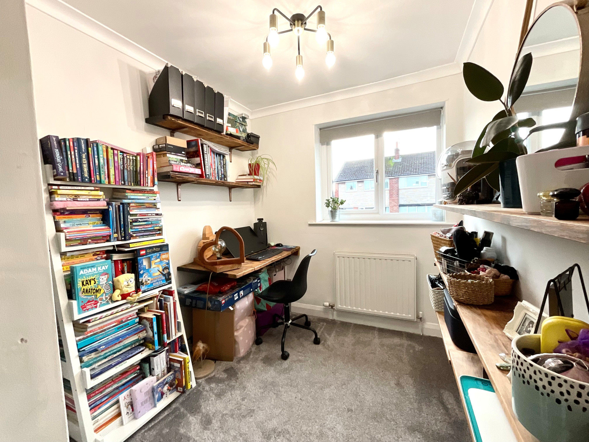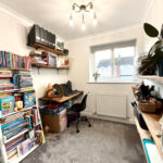 Upstairs, there are two generous double bedrooms and a spacious single β perfect as an office, nursery, or dressing room β plus a modern family bathroom with a vanity unit. The front provides low-maintenance artificial grass and a tarmacked driveway for three cars. To the rear is a superb, well-maintained four-tiered garden, a fully functional workshop ideal for a craftsman or mancave conversion, and a garage for additional storage.
