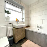 Upstairs, the property boasts three well-presented bedrooms. The main double bedroom includes fitted furniture for excellent storage, while the rear double bedroom enjoys amazing views across the garden. The third bedroom is a generous single, currently used as a home office/study, but would also make a perfect nursery or an enviable dressing room. The family bathroom is tastefully finished, featuring a modern vanity unit and a clean, contemporary design. An additional loft space offers further potential for storage or future development (subject to the necessary permissions).