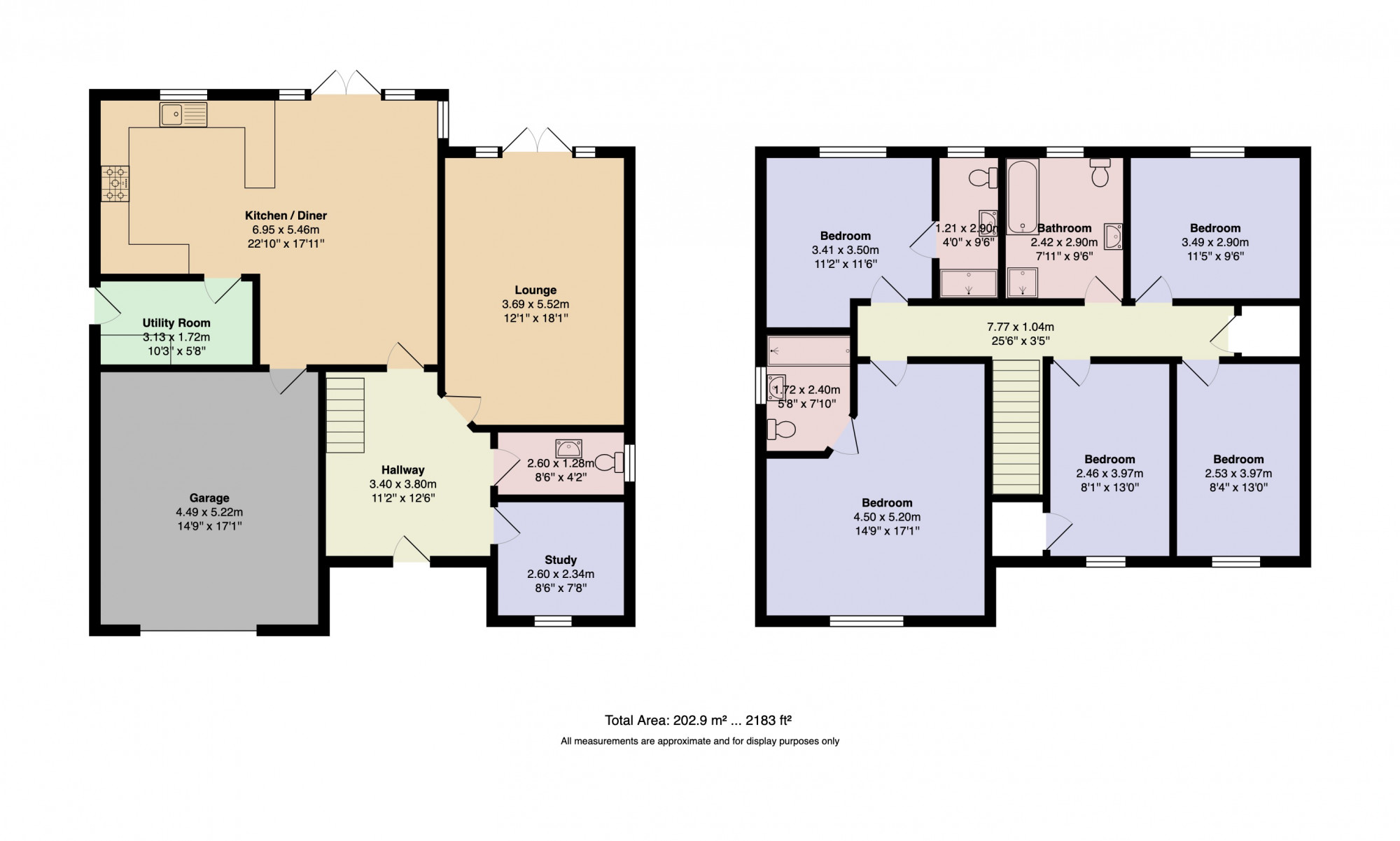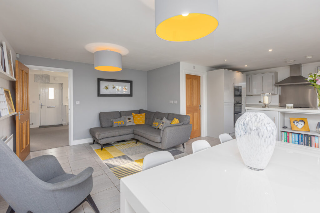 Upon entering you will immediately appreciate the space and light throughout this home. The large entrance hallway features a staircase rising to the landing, whilst internal doors lead into downstairs WC, lounge, study and open plan living to the rear. The great size lounge enjoys a beautiful feature media wall and has a large French doors, flooding the room with natural light. Open plan living has become a must have for many buyers and this area of the property certainly holds the heart of this home. Cleverly designed, the kitchen, dining and living areas enjoy defined separation yet the feel of the open plan aspect. The kitchen features a stunning arrangement of wall, base and full height units incorporating a lovely breakfast island. There is vast preparation space from the work surfaces, along with all of the integral appliances you could need. Finishing the ground floor off is the convenient utility room which provides access to the double garage.
