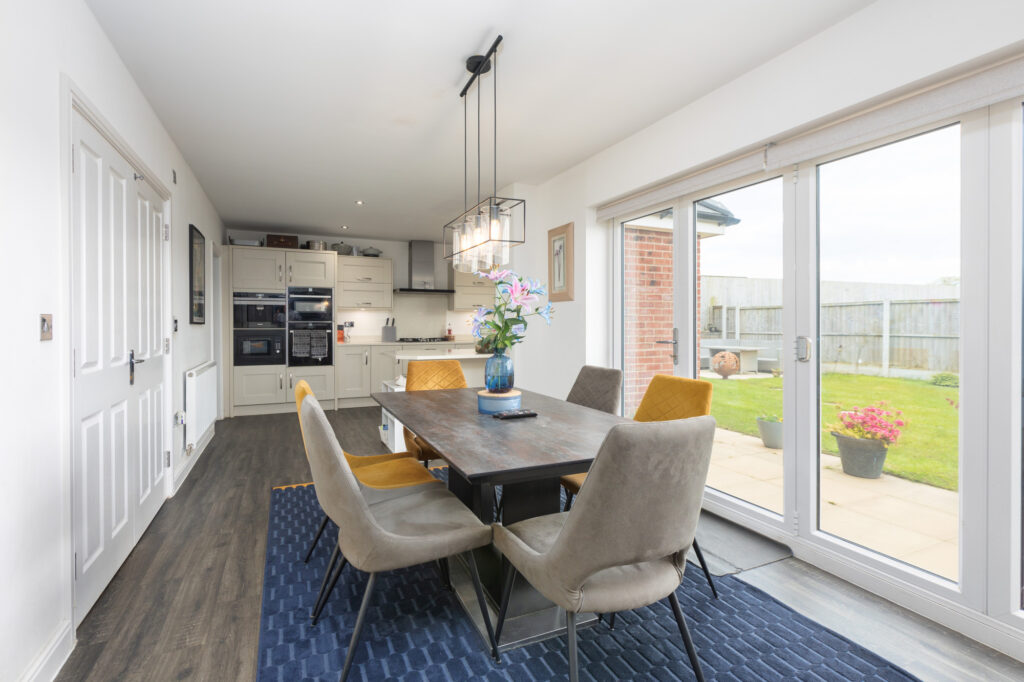 Upon entering you will immediately appreciate the space and light throughout this home. The large entrance hallway features a staircase rising to the landing, whilst internal doors lead into downstairs WC, lounge, study, and open plan living to the rear. The great size lounge enjoys a beautiful feature fireplace has a large bay window, flooding the room with natural light. Open plan living has become a must have for many buyers and this area of the property certainly holds the heart of this home. Cleverly designed, the kitchen, dining and living areas enjoy the feel of the open plan aspect. The kitchen features a stunning arrangement of wall, base and full height units incorporating a lovely breakfast bar. There is vast preparation space from the work surfaces, along with all of the integral appliances you could need. Finishing the ground floor off is the convenient utility room.