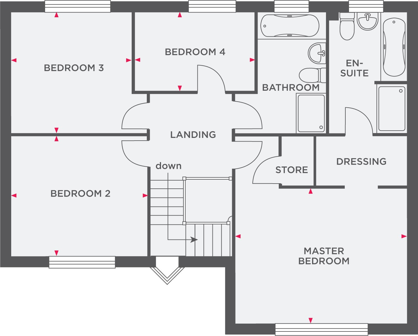The first floor is equally as spacious, with four bedrooms which the family can choose from, as well as a family bathroom. The master bedroom really is impressive. It comes with a dressing area and en suite with a separate bath and shower, so you'll find plenty of space when getting ready in the morning.