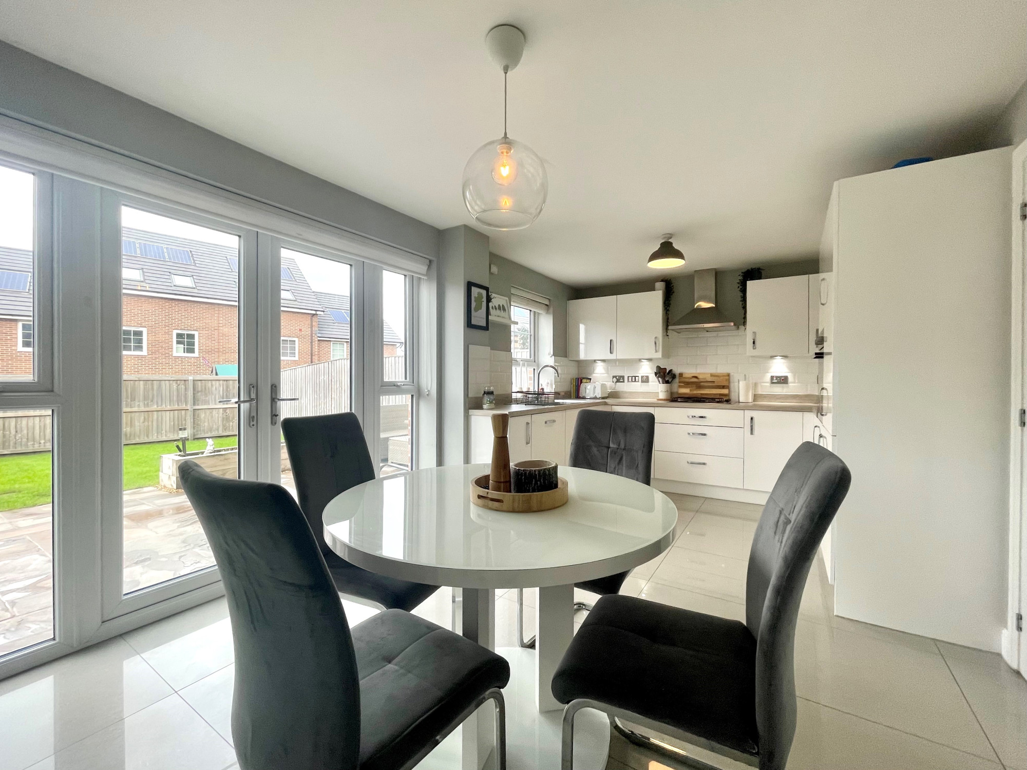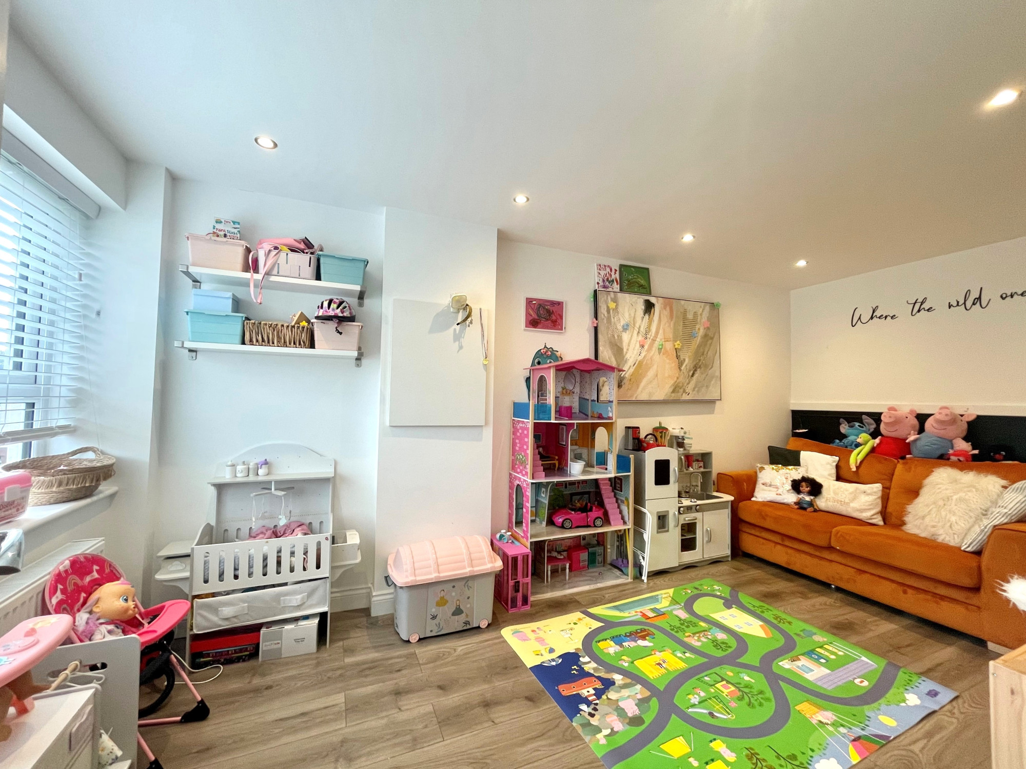 On internal inspection the property briefly comprises; entrance hall, spacious family lounge, modern fitted dining kitchen with a range of fitted base and wall units, utility room and a downstairs WC. Finally, to complete the ground floor there is a converted garage, currently used as a play room. To the first floor there is four double bedrooms, the master housing an en-suite and a stylish fitted three piece family bathroom.