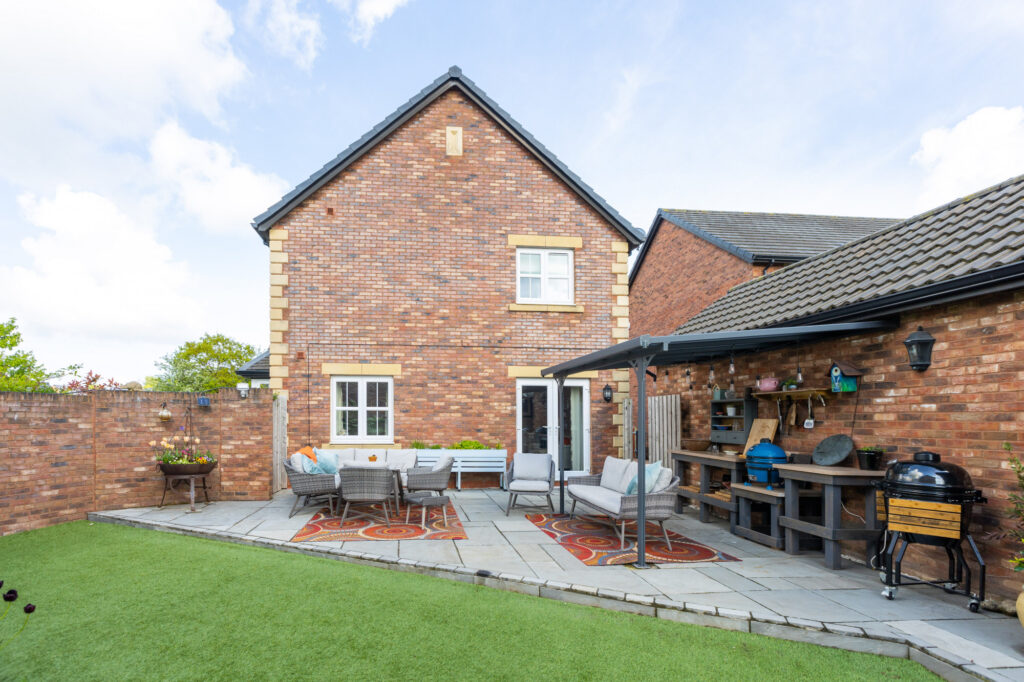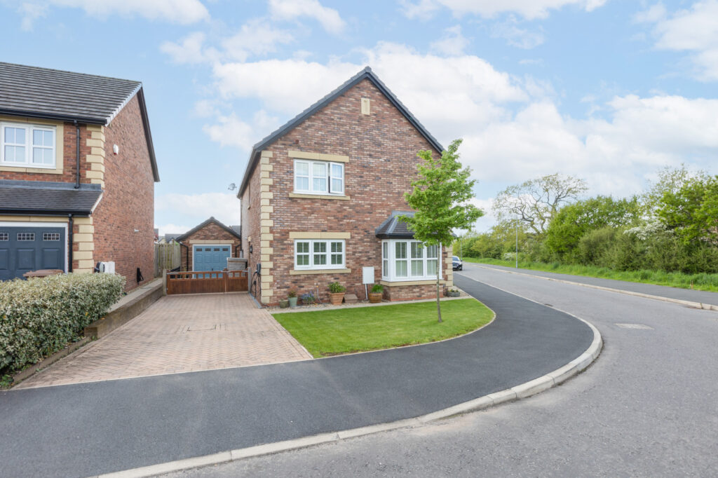 The entrance hall leads to the lounge, kitchen living space, cloakroom WC, four bedrooms (master with en-suite) and family bathroom. Externally there are immaculate manicured gardens.