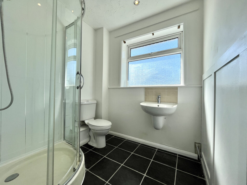 The family bathroom is fitted with modern fixtures, offering a clean and functional space to unwind. This well-appointed bathroom adds convenience to daily life.