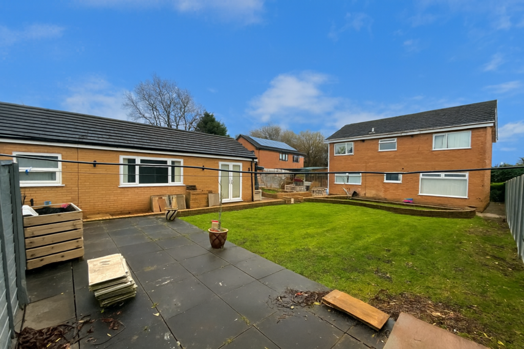 Despite the addition of the outbuilding, the garden remains a generous size, offering both lawned and patio areas ideal for outdoor dining, relaxation, or family enjoyment.