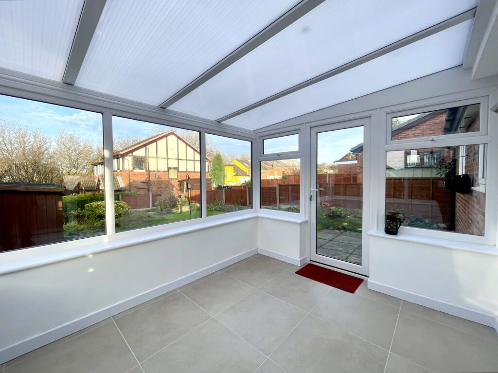 The well proportioned accommodation briefly comprises of an entrance hall, spacious lounge with patio doors leading into the conservatory, fitted kitchen with a range of wall and base units, two spacious bedrooms and a three piece shower room.
