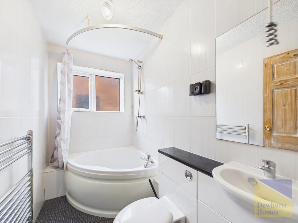 Upstairs, the property comprises two well-proportioned double bedrooms and a family bathroom fitted with a corner bath, serving the household comfortably.