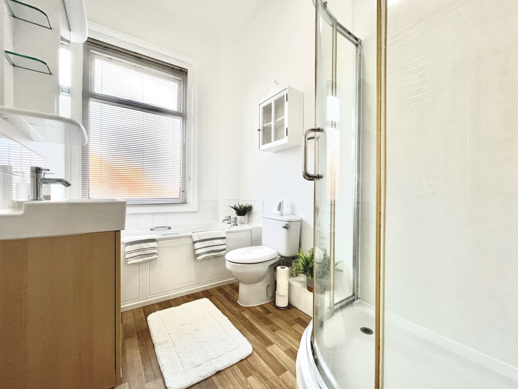 Bathroom: The bathroom is designed to provide both functionality and relaxation. With a modern shower and a luxurious bathtub, it offers the perfect retreat for unwinding after a long day. High-end finishes and plenty of natural light enhance the overall ambiance.