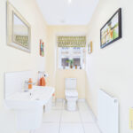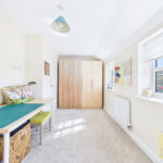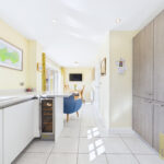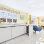 At the heart of the home lies an impressive open-plan kitchen and dining space, meticulously designed with a sleek, modern aesthetic. Featuring high-quality integrated appliances, streamlined cabinetry, and ample workspace, this area is as functional as it is stylish. The dining area seamlessly connects to the garden, creating a superb setting for both intimate family meals and larger social gatherings. A separate utility room, thoughtfully added provides additional practicality, while a contemporary ground floor W/C completes the layout.