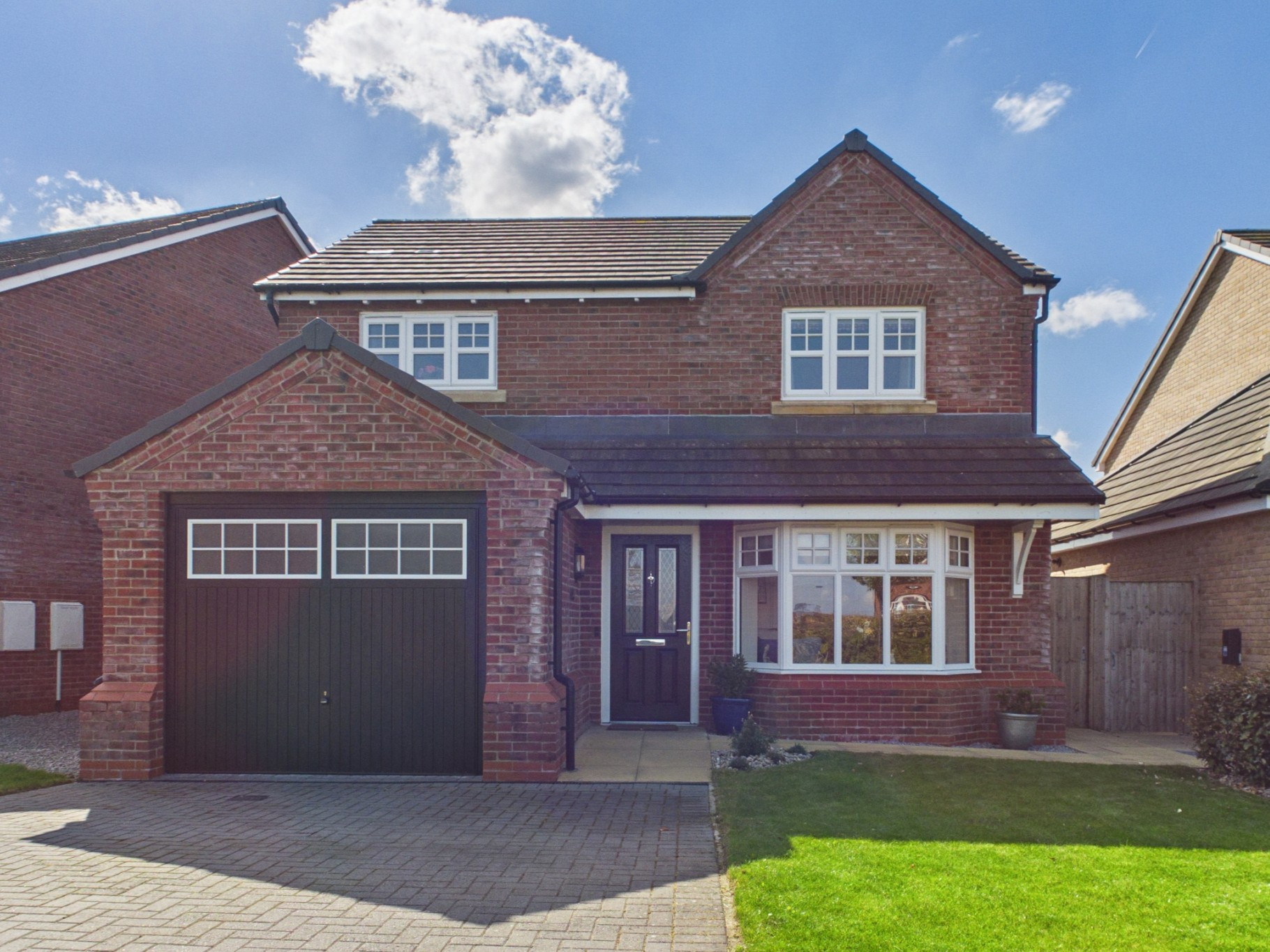 Nestled within an exclusive family development, this outstanding detached residence offers an enviable blend of refined contemporary living and idyllic semi-rural charm. Thoughtfully designed and beautifully presented throughout, the home delivers an abundance of space, natural light, and elegant finishes, perfectly suited to modern family life.
