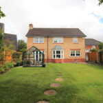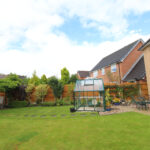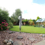 The rear garden has been beautifully lawned with separate patio areas to capture the sun.