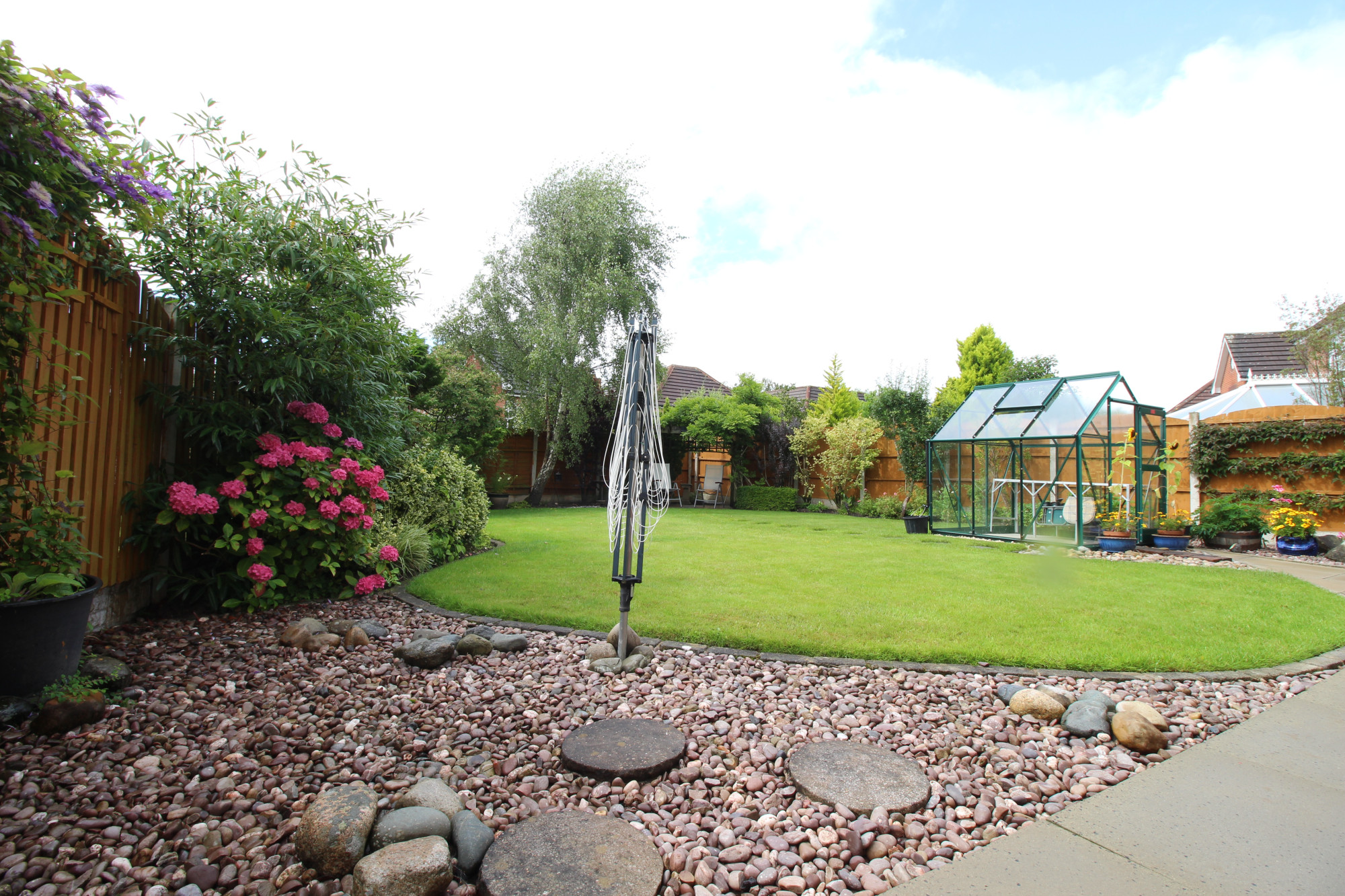 The rear garden has been beautifully lawnedΒ with separateΒ patio areas to capture the sun.