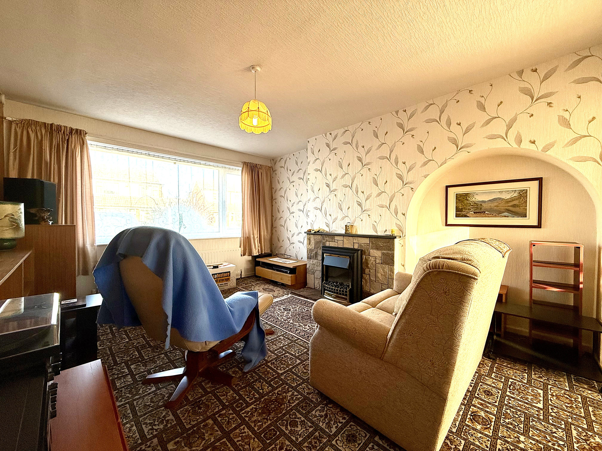 Enter through the front porch into a spacious hallway, with a convenient W.C off to one side. The generous lounge flows into an open-aspect dining room with a serving hatch, ideal for entertaining. The kitchen is fitted with a wide range of wall and base units and utilities, with access into a rear garden room that adds extra living space and opens to the outdoors. Ascend the stairs to two double bedrooms and a neat three-piece bathroom. A handy laundry cupboard provides practical storage and organisation.