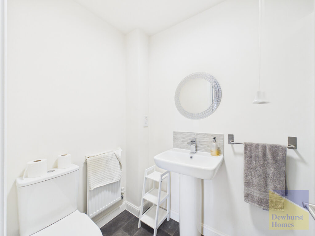 At the heart of the home lies the modern, sleek kitchen diner — a true hub for family living. Fitted with integrated appliances and finished to a contemporary standard, this space is ideal for everything from busy weekday breakfasts to relaxed weekend gatherings. There is ample room for dining, making it a sociable and functional space where family and friends naturally come together. The ground floor also benefits from a convenient W/C and useful storage options, ensuring practicality is never compromised.