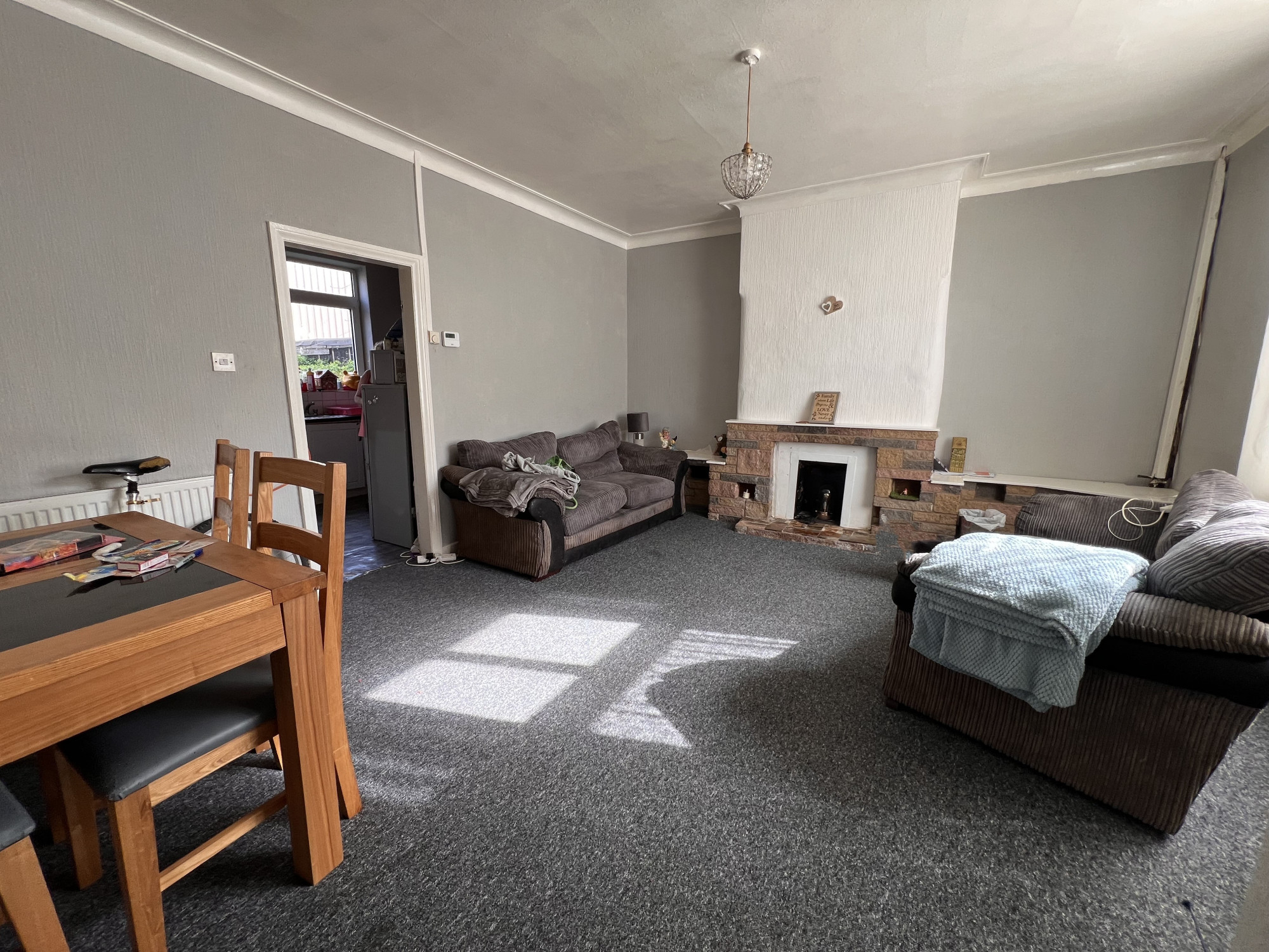 Upon entering the property, there is an entrance vestibule providing access to the large living room. The kitchen is a great size with wall and base storage units and space for built in appliances.