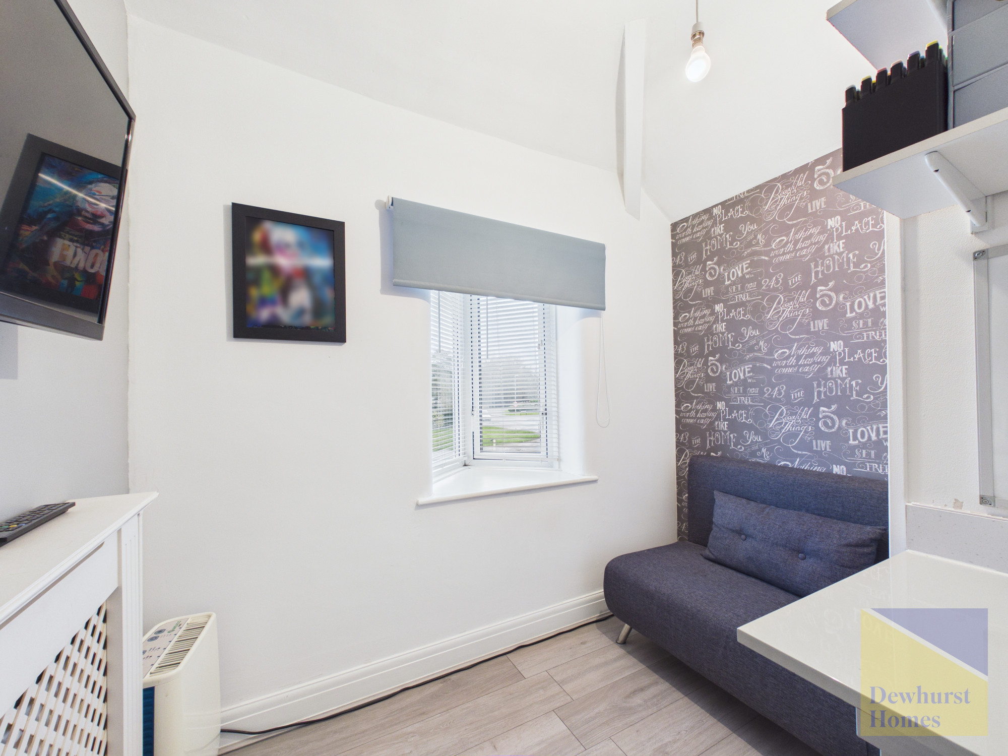 To the first floor, the property offers two generous double bedrooms, both benefiting from fitted storage, along with a well-proportioned single bedroom currently used as a home office and dressing room. The stylish three-piece family bathroom is beautifully appointed and offers the potential to be reconfigured into a four-piece suite if desired. Each room is immaculately presented, reflecting the care and attention invested in maintaining this exceptional home.