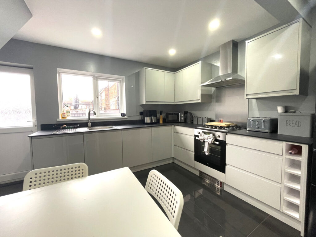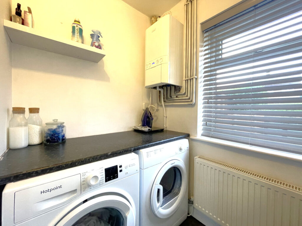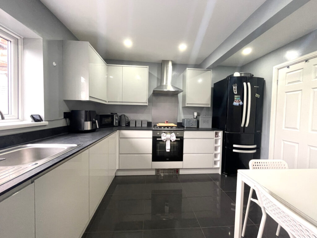 Inside, the home offers a stylish handleless kitchen with a useful utility area, a welcoming lounge, and a central staircase that adds character and charm to the property’s layout.